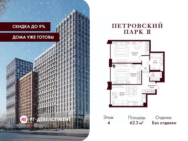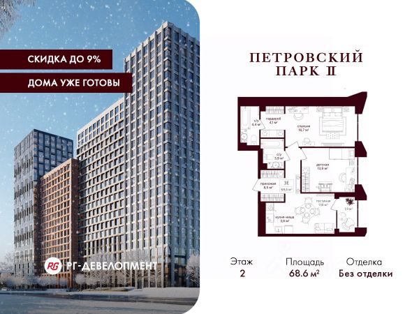 Дом сдан. Ключи в день покупки! В продаже 2-комнатная квартира площадью 67.40 м² с предчистовой отделкой на 5 этаже 43 этажного дома в корпусе Сильвер. ЖК Симфония 34 - концептуально новый жилой комплекс премиум-класса с подземной парковкой, состоит из четырех башен высотой 36 - 54 этажа. Квартиры сдаются с базовой (предчистовой) отделкой MR BASE или дизайнерской чистовой отделкой MR READY. Высота потолков 3 - 6 метров, окна высотой до 2,6 м. Более 100 кладовых в подземной части ЖК и более 500 на этажах. Безопасность - Система контроля входа на территорию комплекса, биометрия - Система автоматического водяного пожаротушения и противопожарного водопровода, система пожарной вентиляции - Доступ на парковку при помощи системы распознавания автомобильных номеров, карточка для контроля доступа резидентов - Система видеонаблюдения - Круглосуточная связь через приложение, телефон, голосовые сообщения с охраной, консьержем, call-центр. Расположение Пешком - 6 минут до метро "Дмитровская" - 15 минут до Тимирязевского парка На машине - 5 минут до Савеловского вокзала и Аэроэкспресса в Шереметьево - 10 минут до Москва-Сити и Садового кольца Благоустройство - 70% территории отведены под зеленые насаждения и ландшафтный дизайн - Приватный Японский сад - Детские площадки с зонированием по возрасту - Clubhouse для резидентов - Wellness & SPA - Зона для пикника, зона с гамаками - Центральное лобби, ресторан, коммерческие помещения - Дополнительный вход/выход на территорию комплекса Окружение - В 10 минутах от Symphony 34 находится дизайн-завод Flacon, где регулярно проходят культурно-образовательные и развлекательные мероприятия - Тимирязевский парк расположен в 850 м. Площадь парка 232 га - Рядом расположен парк "Дубки", площадью 16,5 га. - В 15 минутах расположен Хлебозавод 9. Здесь находятся шоурумы брендов, кафе разных кухонь мира, образовательные проекты и площадки для мероприятиКомпания MR предлагает своим клиентам специальные условия приобретения квартир в рамках программ ипотечного кредитования от банков-партнеров. Продается 2-комнатная квартира с отделкой от застройщика в районе Савеловский в Москве.