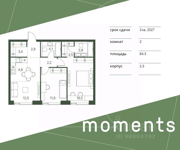 Цены указаны с условием 100% оплаты и стандартной ипотеки. Продается 2-к. квартира номер 1147 общей площадью 56.7 кв.м. на 20-м этаже 34 этажного дома, корпус 2.2. С отделкой White Box. Moments — ЖК бизнес-класса, расположен на расстоянии вытянутой руки от старинного усадебного парка Покровское-Стрешнево. Moments — это единение города и природы, дом, который помогает обрести гармонию и баланс в жизни. Moments расположен на Волоколамском шоссе с удобным выездом в центр и в область, а также с расположенными в пешей доступности объектами транспортной инфраструктуры (МЦК и МЦД-2). Жилой комплекс будет состоять из 3 очередей — 8 корпусов высотой от 4 до 47 этажей. Здания будут расположены под разными углами для максимальной открытости солнцу и максимально роскошным видовым характеристикам. Внутренний двор: Иммерсивное благоустройство от британского бюро Gillespies и West8 сфокусировано на эмоциональном и чувственном опыте. Каждая прогулка по Moments погружает в путешествие со сменой сценариев и плавным потоком уникальных моментов. - Пешеходная экотропа,которая соединяет комплекс с парком Покровское-Стрешнево - Двор с фонтаном - Зеленые сады и лаунж-зоны - Пространства для пикников и общения - Зоны активного отдыха. Детские и спортивные площадки - Пешеходные тропы и велодорожки - Разнообразная коммерческая инфраструктура - Детский сад на 175 мест - Школа на 300 мест - Игровые площадки из натуральных материалов - Сенсорные сады - Безбарьерное зонирование Продам 2-комнатную квартиру с отделкой от застройщика в районе Щукино в Москве.