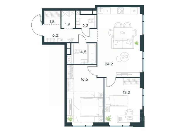 Цена указана с учётом скидки при 100%-й оплате, несубсидированной ипотеке, рассрочке (кроме программы "Рассрочка 0%"). Продается 2-комнатная квартира площадью 63.30 кв. м без отделки. Квартира находится на 5 этаже 20-этажного корпуса 3, в новом жилом комплексе бизнес-класса Level Войковская, расположенном рядом с живописным заповедником "Покровское-Стрешнево" (застройщик - компания Level Group/Левел групп). Прекрасная транспортная доступность - 7 мин. пешком до станции МЦК "Балтийская"; - 15 мин. пешком до станции метро "Войковская"; - 8 мин. на машине до ТТК; - 15 мин. на машине до центра Москвы; - 20 мин. на машине до Москва-Сити. Продуманный архитектурный проект - стильная архитектура от мастерской Фефелова В. В.; - панорамные виды на парки, Химкинское водохранилище и Останкинскую башню; - лобби с высотой потолков до 6,45 метров; - более 20 видов планировочных решений, включая редкие форматы квартир с террасой и увеличенной высотой потолков до 5,42 метров; - 2 варианта дизайнерской отделки в корпусе 4, предлагаются как дополнительная опция к отделке white box: стиль Modern в светлых холодных тонах и стиль Classic в нейтральной бежевой гамме. Квартиры в корпусах 3 и 5 сдаются без отделки. Расположение Level Войковская строится в престижном Северном округе Москвы. Развитая инфраструктура и живописная природа переплетаются в единый ансамбль, столь значимый для комфортной жизни. Войковский район окружают парки и набережные. В шаговой доступности - парк "Покровское-Стрешнево", не более 15-ти минут на велосипеде занимает путь до Тимирязевского парка и 9-ти минут до парка усадьбы Михалково. Рядом более 60 школ, 75 дошкольных учреждений, 17 государственных и 6 частных вузов, 25 супермаркетов, 4 торговых центра, среди которых ТЦ "Метрополис" и ТЦ "Авиапарк". Внутренняя инфраструктура На территории жилого комплекса предусмотрены коммерческие помещения: кафе, ресторан, пекарня и другие сервисы откроются на первых этажах корпусов. Для жителей будет доступен отапливаемый подземный паркинг на 244 машино-места с доступом с любого этажа на лифте. На территории паркинга будет расположено 125 кладовых помещений для хранения сезонного инвентаря. Лобби и благоустройство Дизайн лобби Level Войковская создан совместно с бюро BLANK. Это уютные гостиные, где хочется задержаться. Теплая цветовая гамма, ресепшен, зоны ожидания, лапомойки и гостевые санузлы - каждая деталь превращает лобби в комфортное продолжение вашего дома. 1,15 га площади в первых двух этапах строительства отведено под приватный внутренний двор, который спроектирован совместно с бюро "Правда". Детские площадки для всех возрастов, спортивные пространства для йоги, воркаута и петанка, уютные зоны для тихого отдыха или работы. Здесь утро начинается с вдохновения, а вечер наполнен приятными моментами. Лифты Комфортное перемещение внутри жилого комплекса будут обеспечивать надёжные лифты с доступом в паркинг с жилых этажей. В каждом корпусе предусмотрено по 3 грузопассажирских лифта.