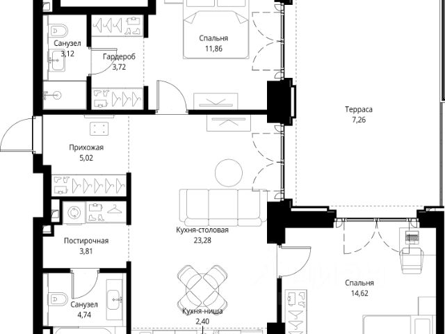 Продаётся 2-комнатная квартира 58.10 м² в жилом комплексе Ракурс. Квартиру отличают панорамное остекление, потолки 2,9 м, улучшенная шумо и воздухоизоляция. Дом сдаётся в 1 квартале 2028 года, продажи проходят через эскроусчета. Подземный паркинг, коворкинг, закрытая благоустроенная территория с фонтаном и артобъектами. Гибкие условия покупки. Rakurs — место, в котором жизнь приглашает к исследованию. Концепция проекта knowledge-centric среда, которая выражается здесь в образе жизни: • атмосфере интеллектуальной среды, • доступности образования, • фокусе на возможности для развития. RAKURS разместился в районе науки и окружен исследовательскими институтами и образовательными учреждениями, при этом на территории построена своя школа с уникальной концепцией. Расположенный на пересечении улиц Маршала Бирюзова и Берзарина, недалеко от станций метро "Октябрьское поле" и "Зорге", дом угождает транспортной доступностью автомобилистам и пешеходам. Инфраструктура же района создана с заботой о людях: здесь много парков, кафе и других уютных мест для отдыха. В состав комплекса входят три башни высотой 18, 26 и 44 этажа, каждая из которых имеет свой запоминающийся силуэт. Между собой башни связаны среднеэтажными строениями с индивидуальными фасадами. Композиция и пластика корпусов, а также панорамное остекление башен обеспечивают квартиры максимальным количеством дневного света и выигрышными видами на центр города и Москву-Сити. Упор на функциональность не лишает проект его уникального образа — все башни имеют неординарную форму с харизматичными уступами и консолями. Rakurs предлагает широкий выбор уникальных вариантов жилья — от студий до эксклюзивных квартир с приватными террасами. Проект спроектирован с фокусом на биофильность и функциональность. Во дворах Rakurs можно насладиться завтраком на террасе кафе, игрой с детьми или спортом на свежем воздухе. В Rakurse cвой комьюнити-центр - многофункциональное пространство для работы, отдыха, общения и развития. Одна из важнейших частей центра — частная библиотека с лаундж-зоной. Книжный фонд отбирается для нее кураторской командой, а дизайн пространства сделан так, чтобы жители могли почувствовать умиротворяющую атмосферу библиотечного зала. Идея knowledge-centric среды поддерживается здесь и книжным магазином с лекторием, а также зонами для самостоятельной учебы и занятий с преподавателями. Продам 2-комнатную квартиру с отделкой от застройщика в округе СЗАО в Москве.