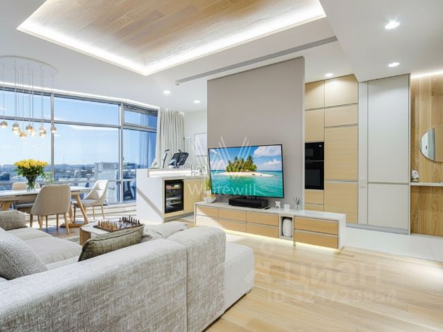 ПЛАНИРОВКА. В квартире много света и солнца, так как впереди нет высотных зданий, открывается панорамный вид на город. Просторная гостиная с кухонной и обеденными зонами расположена вдоль окон, спальня размещена в алькове за двумя раздвижными трехметровыми дверьми, которые в закрытом виде изолируют ее полностью,а при открытых дверях в спальню попадает достаточно дневного света и воздуха. В квартире спроектированы два санузла гостевой и при спальне, а также несколько вместительных систем хранения в прихожей и коридоре.