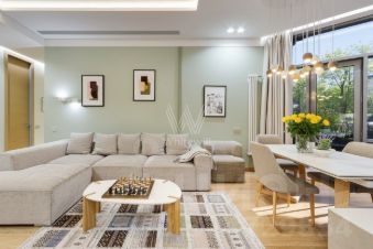 В квартире установлено канальное кондиционирование и приточная вентиляция, в зонах прихожей и ванных комнат смонтированы тёплые полы, имеется бойлер и системы очистки воды.