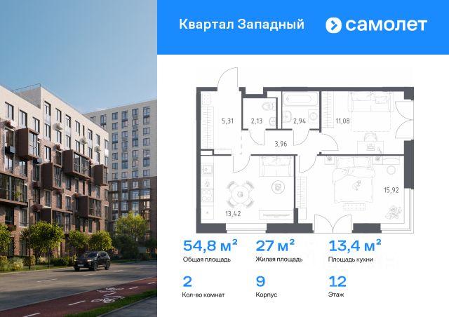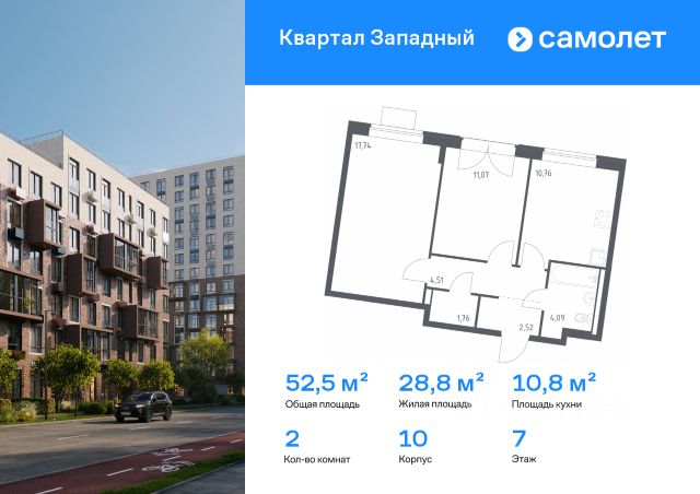 Строим кварталы для жизни с заботой о будущем. Предлагается 2-комнатная квартира комфорт-класса 52,19 кв.м в корпусе 9 на 7 этаже, в ЖК "Квартал Западный" Квартира с чистовой отделкой. Доступность дополнительных опций уточняйте у застройщика. Приобрести квартиру возможно по специальным акциям от застройщика, с текущими условиями акций можно ознакомиться в блоке "Акций". Цена динамическая и может отличаться, уточняйте актуальность у застройщика. Жилой комплекс в окружении лесопарков и рядом с рекой. До станции МЦД-4 "Санино" можно дойти пешком за 7 минут, а на территории проекта появится транспортно-пересадочный узел с торговым центром. Для жителей построят школу, 2 детсада, в одном из которых будут развивающие кабинеты-трансформеры. Дворы — тихое зеленое пространство без машин. В проекте появится собственный ландшафтный парк с благоустроенной набережной и центральная площадь, на которой будут проводиться различные мероприятия. Высота домов — от 5 до 15 этажей. Фасады выполняют в естественных оттенках, в соответствии с дизайн-кодом "Полевой луг". У каждой секции — свое цветовое решение. Белый цвет верхних этажей добавляет застройке легкости. Фасады облицованы клинкерным глазурованным кирпичом, который используют в проектах бизнес-класса.