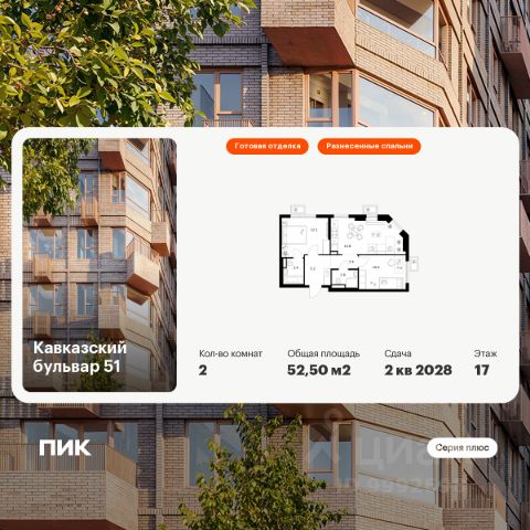 Продаётся 2-комн. квартира площадью 47,8 кв.м на 2 этаже 23 этажного дома (Корпус 3.1, Секция 1) проекта ПИК Кавказский бульвар 51. Светлый просторный подъезд на уровне земли, функциональная планировка, большие окна, c отделкой. "Кавказский бульвар 51" — современный жилой квартал в районе Царицыно. Проект частично реализован. "Кавказский бульвар 51" находится в районе Царицыно, недалеко от одноимённого музея-заповедника. До метро "Кантемировская" — 17 минут пешком. За 20 можно дойти до станции "Чертаново". В 10 минутах на машине — МКАД, в 11 минутах — Варшавское шоссе, а в 16 минутах — ТТК. В проекте жилые дома высотой от 5 до 33 этажей, детский сад и школа. На первых этажах доступны магазины, кафе, салоны красоты и другие сервисы — чтобы купить кофе и свежий хлеб к завтраку, можно просто спуститься на лифте. В уютных дворах-парках есть места для отдыха и детские площадки. Для прогулок на свежем воздухе мы построим для жителей широкий пешеходный бульвар. В районе вокруг "Кавказского бульвара 51" есть всё для комфортной жизни: детские сады, школы, поликлиники, магазины и торговые центры. Девять минут на машине — и вы у музея-заповедника "Царицыно", где можно гулять среди исторических построек, лежать на траве под тенью деревьев или заниматься спортом на специальных площадках. Есть парки и поближе: до Аршиновского можно дойти за 8 минут, а до парка "Сосенки" — за 13 минут. Артикул 1009341 (Застройщик АО "СПЕЦИАЛИЗИРОВАННЫЙ ЗАСТРОЙЩИК "ТОРГОВЫЙ ДОМ СПУТНИК")