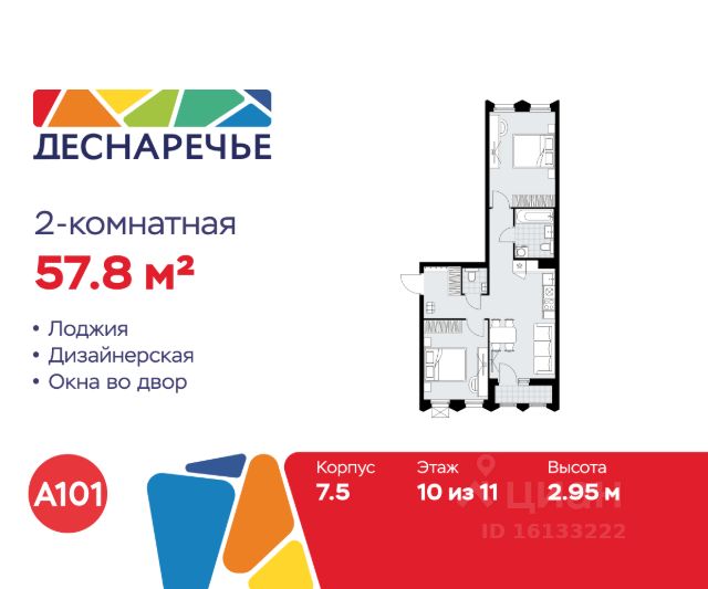 Продается двухкомнатная квартира 1300 в новостройке ЖК "Деснаречье" по адресу Москва, ТиНАО, Новомосковский АО, Десеновское С/П, Десна деревня, Москва, район Троицк, ЖК Деснаречье, к. 4.5. Общая площадь квартиры - 39.60 кв. м., этаж 15 из 15, секция 17. Тип проекта, по которому построен дом - монолит, компания-застройщик - ООО "А101". Стоимость квартиры - 18137592 Р. ПРЕДЛОЖЕНИЯ ОТ ЗАСТРОЙЩИКА В МАРТЕ 2026: Ипотека от 13,9 % для всех! На весь срок. "Семейная ипотека" вернулась. Ставка от 3,5 % на весь срок! Без удорожания! Выгодное ипотечное комбо: Ипотека от 2200 р./мес. и от 6 % после рождения ребёнка! Ипотека для всех "Держи пять!" - ставка 5 % на 2 года! *более подробную информацию по скидкам и акциям уточняйте в отделе продаж Масштабный ЖК "Деснаречье" состоит из 3 районов ("Парк", "Река" и "Лес") в живописном природном окружении - на берегах двух рек. На территории каждого района появится собственная развёрнутая инфраструктура и уникальное благоустройство: скверы, спортивные и игровые площадки, пешеходные и велосипедные маршруты. До станции метро "Десна" (открытие запланировано на 2027 год) - всего 10 минут пешком от района. На автомобиле до ст. метро "Ольховая" и "Прокшино" - 12 минут. "Фаст-трек" свяжет "Деснаречье" со спортивно-событийным кластером и бизнес-кварталом "Прокшино". В пешей доступности и на первых этажах домов откроются: супермаркеты, школы, детские сады, спортивная школа, медицинские клиники, кафе, пространства для досуга и развития детей и взрослых. Уже сейчас доступна действующая инфраструктура соседней локации. Это настоящий "15-минутный город", когда всё рядом. Для активного и созерцательного отдыха - живописные прогулочные территории в лесу, благоустроенные зоны вдоль рек Незнайка и Десна с пирсом и лодочной станцией, ФОК, термальный комплекс с бассейном. Закрытые дворы с системой контроля доступа свободны от машин, оснащены качественным спортивным и игровым оборудованием. Преимущества "Деснаречья": - ст. метро "Десна" (2027 год) - пешая доступность - 2 реки, природный парк, лесной массив - "15-минутный город" - вся инфраструктура рядом с домом - школы и детские сады, спортивная школа Продается 2-комнатная квартира в новостройке с отделкой в поселении Десёновское в Москве.
