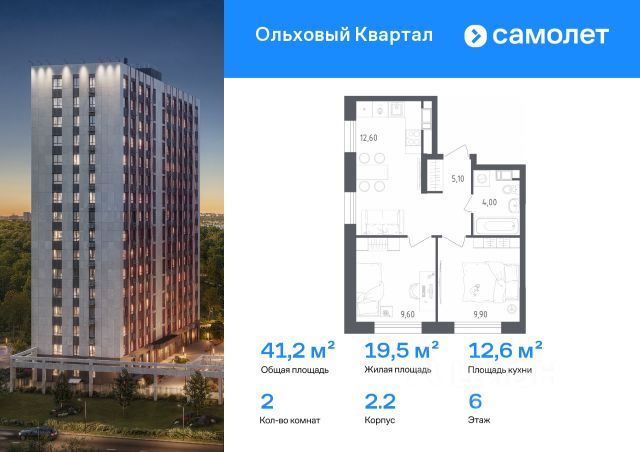 Строим кварталы для жизни с заботой о будущем. Предлагается 2-комнатная квартира комфорт-класса 41,2 кв.м в корпусе 2.2 на 6 этаже, в ЖК "Ольховый Квартал" Квартира с чистовой отделкой. Доступность дополнительных опций уточняйте у застройщика. Приобрести квартиру возможно по специальным акциям от застройщика, с текущими условиями акций можно ознакомиться в блоке "Акций". Цена динамическая и может отличаться, уточняйте актуальность у застройщика. Жилой комплекс "Ольховый Квартал" — проект комфорт-класса в Новой Москве, в пешей доступности от 3 станций метро: "Ольховая", "Прокшино" и "Коммунарка" новой Троицкой ветки. Это 3 дома высотой 16 этажей с приватными зелеными дворами. Территория квартала граничит с зеленой рощей, а через дорогу — лесопарк для ежедневных прогулок. Рядом 7 фитнес-клубов, магазины, кафе, медицинские центры, а также школы и детские сады. Пространства для тихого отдыха будут огорожены живыми изгородями. Также высадят ель, которая создаст новогоднее настроение зимой. Предусмотрены современные детские площадки для ребят всех возрастов, воркаут-зона, площадка для выгула и тренировки собак. Любители спортивных игр оценят баскетбольную площадку и столы для настольного тенниса. Светлые фасады гармонируют с окружающей природой. Облицовочный материал — фиброцементные панели. Вечером фасады украшает архитектурная подсветка.