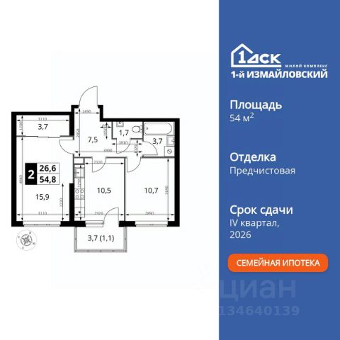 Прямая продажа от застройщика! Жилой Комплекс Комфорт класса. Продаётся 2-к квартира номер 304 общей площадью 51.5 кв.м. на 3-м этаже 12 этажного здания. Предчистовая отделка. Цена с учётом скидки. Особенности квартиры: - Организуем показ в удобное для вас время! - Линейная планировка - максимальная функциональность и удобство. - Увеличенное количество окон - дополнительное освещение и свежий воздух. - Евроформат - просторное и удобное жилье с отличной планировкой. - Гибкая планировка - создайте пространство по своему вкусу. - Можно оборудовать рабочее место - комфорт для работы и учёбы. - Балкон - открытое пространство для отдыха. - Большой балкон - больше пространства для вашего отдыха. Квартира с предчистовой отделкой. Вам не придется заниматься черновыми и трудоёмкими работы, а чистовую отделку и дизайн - сделайте на свой вкус. Информация о комплексе: ЖК "1-й Измайловский" в восточной части Москвы: идеальное место для жизни в окружении 14 000 гектаров леса. Наслаждайтесь лыжными прогулками зимой и пробежками летом в сиреневом саду и лесопарках. Комплекс отгорожен от шоссе застройкой первой линии и садами здоровья. Из окон открываются виды на парк "Лосиный остров" и зеленые дворы. Близость к природе и спортивным объектам создаёт атмосферу здорового образа жизни. Транспортная доступность: Не более 2,5 км до станций метро "Щёлковская" и "Черкизовская" и МЦК "Локомотив". Щёлковское шоссе соединяет квартал с Северо-восточной хордой и МКАД, Центральным автовокзалом и Восточным железнодорожным вокзалом. Две автобусные остановки в паре минут ходьбы и 11 маршрутов общественного транспорта. На автомобиле 3 минуты до СВХ 12 минут до ТТК 15 минут до Садового кольца Внутренняя инфраструктура: ЖК расположен в историческом районе Москвы с развитой инфраструктурой. В шаговой доступности: 6 детских садов (включая собственный на 125 мест), 3 школы, поликлиники, торговые центры и парки. Проект создан для здорового образа жизни: рядом стадионы, спортивные объекты для футбола, баскетбола и конного спорта, а также более 30 км беговых и велодорожек. Всё для активной жизни в окружении зелени и современной инфраструктуры. Квартира с предчистовой отделкой - ваш дизайн без черновых работ 2-комнатная квартира в новостройке с отделкой в районе Гольяново в Москве.