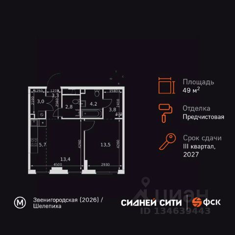 10 минут от Москва-Сити В продаже квартира площадью 65.33 м² с предчистовой отделкой на 2 этаже 55 этажного дома. Квартира расположена в корпусе Анна. Джойс — это премиальный жилой комплекс от девелопера MR в районе Хорошёво-Мнёвники. Он включает несколько эффектных небоскрёбов высотой 47-56 этажей, эксклюзивные форматы квартир с панорамным остеклением, подземный двухуровневый паркинг на 239 м/м, собственную приватную инфраструктуру, закрытый ландшафтный парк 2,3 Га с функциональным зонированием и охраняемой территорией. Над проектом работали лучшие команды международных агентств с многолетним опытом: Genpro, S&P, iLight International и другие. Расположение Пешком: - 5 мин. ст. МЦК "Хорошёво"; - 15 мин. ст. м. "Народное ополчение"; - 10 мин. ст. метро "Звенигородская" с 2027 года; - 20 мин. причал "Карамышевский". На автомобиле: - 3 мин. до Звенигородского шоссе; - 5 мин. до ТТК: - 8 мин. до Серебряного бора и Строгинского затона - 10 мин. до ММДЦ "Москва-Сити"; - 40 мин. до аэропорта "Шереметьево"; Благоустройство - собственный ландшафтный парк 2,3 Га; - парк скульптур от Cosmoscow; - консьерж-сервис 24/7; - сервисный лифт и вход; - игровые и спортивные площадки; - коворкинг с библиотекой; - лаунж-зона с камином; - игровые комнаты для детей и Клуб для подростков с оборудованием для видеоигр; - спортивная студия для индивидуальных тренировок; - гостиная с мини-кухней; - зоны для выгула собак; - подогрев пешеходных дорожек в зимний период; - автополив зелёных насаждений; - премиальные рестораны, кафе, химчистки, аптеки и супермаркеты. Окружение - 4 парка: Покровское-Стрешнево, Филёвский парк, Серебряный бор и Берёзовая роща; - 15 общеобразовательных заведений, в том числе две школы из самых лучших в Москве: государственная школа "Интеграл" и частная "Хорошкола"; - спортивное сооружение "ВЭБ Арена", домашний стадион ФК ЦСКА; - крупнейший в Европе торгово-развлекательный центр "Авиапарк". Продам 2-комнатную квартиру в новостройке с отделкой в районе Хорошево-Мневники в Москве.