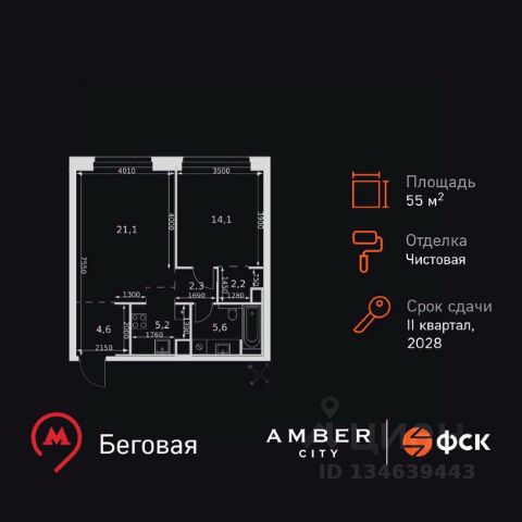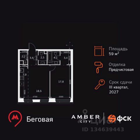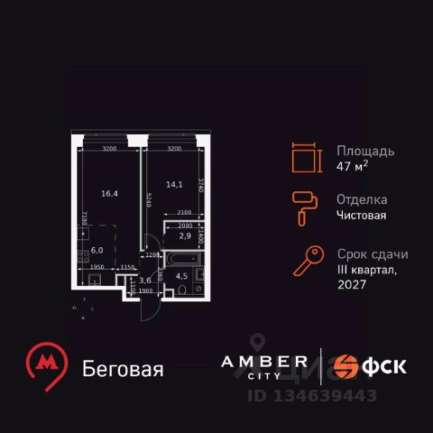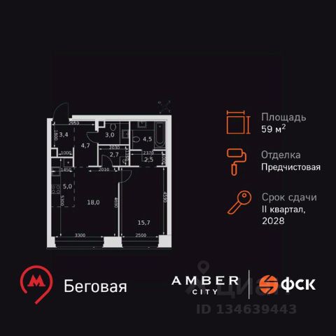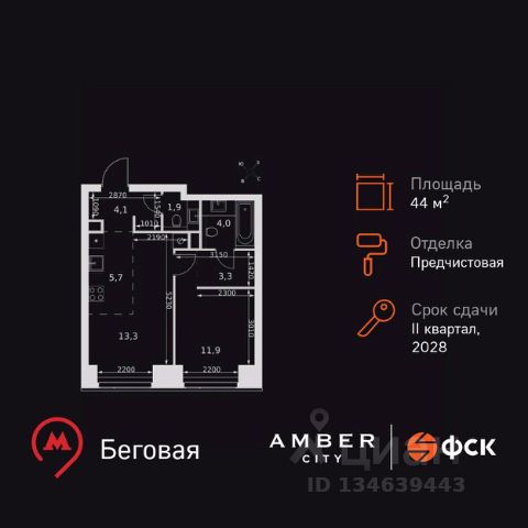 Прямая продажа от застройщика! Жилой Комплекс премиум-класса. Продаётся 2-к квартира номер 654 общей площадью 44.2 кв.м. на 3-м этаже 57 этажного здания. Отделка Whitebox. Цена с учётом скидки. Особенности квартиры: - Мастер-зона с санузлом и гардеробной. Всё для вашего комфорта и удобства, включая личный санузел и гардероб. - Просторная спальня, в которой можно разместить большую кровать. - Линейная планировка - максимальная функциональность и удобство. - Увеличенная ширина окна/окон - больше света и визуального простора. - Увеличенная высота окна - больше воздуха и света. - Гостевой санузел - комфорт и удобство для ваших гостей. - Ниша под стиральную машину - удобство и экономия пространства. - Евроформат - просторное и удобное жилье с отличной планировкой. - Гибкая планировка - создайте пространство по своему вкусу. - Место для игры/занятия спортом - идеальное пространство для активных детей. - Линейная кухня - функциональность и практичность в одном решении. - Проходная кухня-гостиная - идеальное пространство для общения и готовки. - Гардеробная - удобство для хранения и организации вещей. - Ниша под шкаф - компактное и удобное место для вещей. Квартира с предчистовой отделкой (White box). Вам не придется заниматься черновыми и трудоёмкими работы, а чистовую отделку и дизайн - сделайте на свой вкус. Информация о комплексе: Amber City - это не просто квартал. Это место, куда ведут все маршруты, где рождается вдохновение работать и творить, где счастлива семья и жизнь кипит 24/7. Модная архитектура, высокотехнологичные решения и самодостаточная инфраструктура приближают Amber City к лучшим районам Гонконга и Нью-Йорка. Потрясающие виды на Москва-Сити и центр позволяют заряжаться их амбициозностью, не подчиняясь суете. Стремящиеся ввысь небоскребы, благоустроенный парк с зонами отдыха для взрослых и детей, а также многочисленные объекты инфраструктуры возводятся в западной части центра Москвы. Транспортная доступность: Квартал отличается исключительной транспортной доступностью: большая часть значимых мест Москвы находится на расстоянии 15-20 минут. Такое расположение позволит полностью погрузиться в деловую и культурную жизнь столицы и тратить на дорогу только необходимый минимум времени. Общественный транспорт: - Станция метро "Беговая" - 5 минут пешком - Станция "Беговая" (МЦД-1) - 5 минут пешком - Ж/д станция Беговая - 12 минут пешком - Остановка "2-й Хорошёвский проезд" - 3 минуты пешком - Станция метро "Звенигородская" (строящаяся) - 10 минут пешком На автомобиле: - Звенигородское шоссе - 3 минуты - TTK - 5 минут - Хорошёвское шоссе - 9 минут - Садовое кольцо - 12 минут - Красная Пресня - 15 минут - Тверская - 20 минут - Серебряный бор - 8 минут - Строгинский затон - 8 минут - Москва-Сити - 10 минут - Кремль - 20 минут - Аэропорт Шереметьево - 40 минут Внутренняя инфраструктура: Умелая работа над ландшафтом позволила правильно зонировать многоуровневое пространство, общей площадью Продам 2-комнатную квартиру в новостройке с отделкой в районе Хорошевский в Москве.