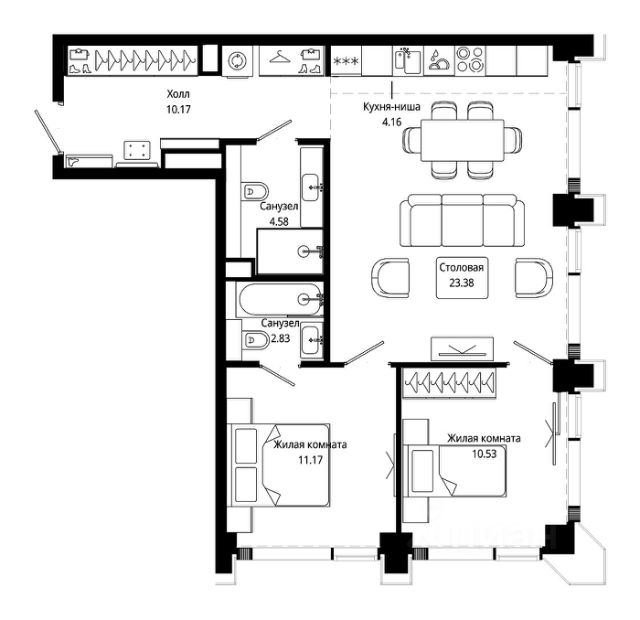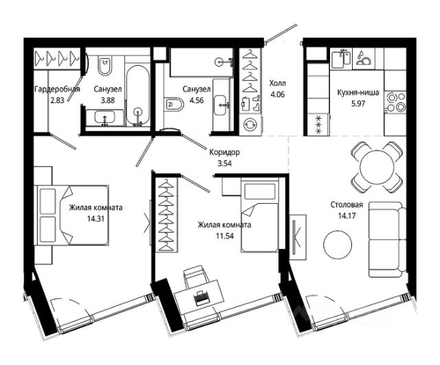 Указанная акционная стоимость доступна при 100% оплате или ипотеке без субсидирования. Цена действует до 10.11.2025 23:58:59. Стоимость без акции 34422273. Продаётся 2-комнатная квартира от застройщика в ЖК премиум-класса TATE на 17 этаже. Общая площадь 63,05 м². Отделка предчистовая (white box). Башня В. Срок сдачи: 2 кв. 2027 Выдача ключей: 4 кв. 2027 Проект расположен на границе с ЦАО в районе Марьина Роща на улице Веткина. В шаговой доступности находится метро Марьина роща (5 минут), парки Останкино и Сокольники (15 минут). До центра столицы время в пути составит 15 минут на авто. На территории премиум квартала откроют спа- и фитнес-центр, бассейн, оборудуют детские и спортивные площадки. Предусмотрен подземный двухуровневый паркинг с контролем доступа и лифтом на жилые этажи. Паркинг рассчитан на 568 машино-мест. Доступ в жилой комплекс осуществляется по биометрическому контролю - Face ID. Территория закрытая с видеонаблюдением и консьерж-сервисом 24/7. Особенности башни В • Потрясающие виды на 4 стороны: Москва-Сити | Останкино | ВДНХ | Тимирязевский парк • Уголовок остекление • Большие метражи квартир • Кладовые на этаже • Квартиры с мастер-спальнями и гардеробными Особенности ЖК: - Исторический район; - Панорамная лаундж-зона на высоте 140 м; - На 4041 этажах видовые пентхаусы площадью до 200 м²; - Два вида отделки: лаконичный и монохромный WhiteBox или готовые интерьеры с безупречным чувством меры - Лобби с потолками высотой почти 6 м; - В отдельном 6-этажном здании на территории будут: просторный фитнес-центр с бассейном, концептуальный ресторан, офисные пространства; - Детские зоны и спортивные площадки; - 6 скоростных лифтов; - Лапомойки для животных; - Безбарьерная среда. Продается 2-комнатная квартира в новостройке с отделкой в районе Марьина роща в Москве.