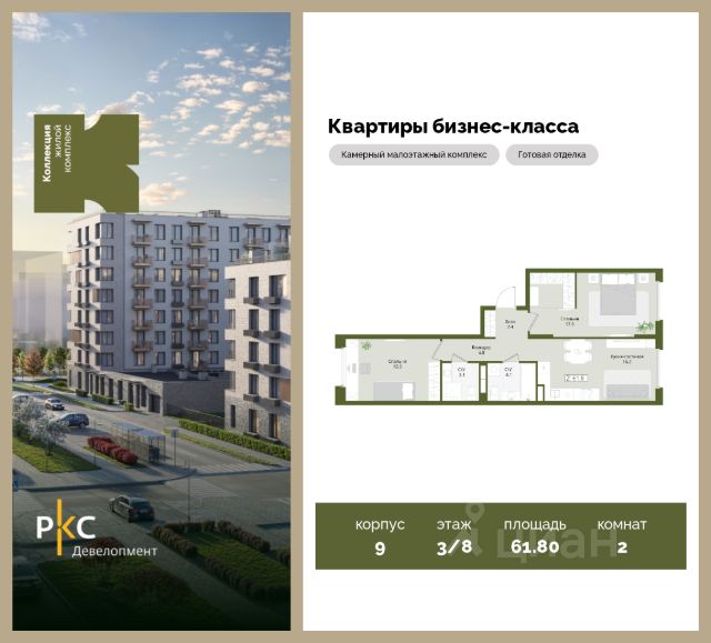 Агентам не звонить. Продается 2-комнатная квартира на 7 этаже с готовой отделкой от застройщика. В квартире будет 2 спальни, 2 санузла, вид на дорогу/двор. Общая площадь 61,8 кв.м. На выбор представлены 3 вида дизайнерской отделки с использованием качественных материалов. Высота потолков 3 м. Площадь кухни 16.2 м2. "Коллекция" это камерный среднеэтажный жилой комплекс бизнес-класса в престижном экологически чистом районе Подмосковья. Прекрасная экология и живописная природа, отсутствие промышленных зон и вредных предприятий. В проекте планируется строительство 5 корпусов средней этажностью (4-8 этажей) с террасами и угловыми окнами, строительство собственной инфраструктуры: три детских сада, школа, поликлиника, физкультурно-оздоровительный комплекс. Жителям будут доступны машино-места в подземном паркинге, кладовые помещения. Ввод в эксплуатацию 3 кв. 2028г. Развитая инфраструктура: Детские площадки будут выполнены в природных материалах, игровые комплексы с бизибордами, развивающие игровые установки для игр с песком. Спортивная инфраструктура: столы для настольного тенниса, тренажеры, гимнастический комплекс. В пешей доступности находятся парк Дружба, загородный клуб "Moscow Country Club", парк имени Карбышева. Это располагает к приятным прогулкам и спокойному отдыху жителей комплекса. Транспортная доступность: 13 км от МКАД, 14 минут до МЦД-2 Нахабино, 26 минут до метро "Митино", 30 минут до метро "Пятницкое шоссе". В ближайшей перспективе - расширение местной дорожной сети и запуск новых маршрутов до ж/д станций и станций метро.
