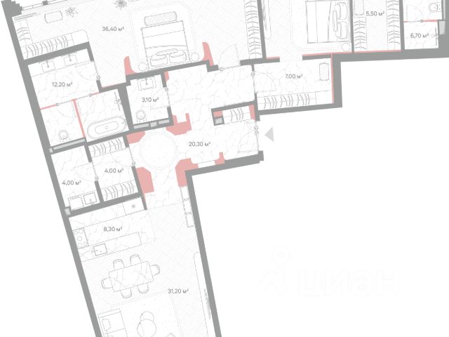 Продаются апартаменты общей площадью 173,3 кв. м. с 2-мя спальнями и кухней-гостиной. О жилом комлексе Компания Vesper представляет проект "Левенсон" в исключительной локации — на Патриарших прудах. Проект собирает комбинацию из легендарных исторических зданий типографии поставщика императорского двора Александра Левенсона и объектов современной архитектуры. Новый проект Vesper создан для ценителей подлинных исторических особняков, наполненных совершенными технологиями для создания абсолютного уровня комфорта и эстетики жизни. Клубный дом "Левенсон" объединяет сразу несколько форматов жилой недвижимости, отвечающих самым высоким запросам: современный дом, два исторических здания, частная резиденция. В проекте представлены квартиры и апартаменты с патио, таунхаусы, пентхаусы с террасами. О застройщике Девелопер проекта Vesper специализируется в премиальном сегменте клубной жилой недвижимости. Портфель компании включает 22 проекта в Москве и странах Европы. Актуальные архитектурные проекты, индивидуальный дизайн, передовые технологии, качественные материалы и лучшие мировые практики воплощены в каждом доме компании. Расположение и транспортная доступность Расположение проекта в районе Патриарших прудов позволит резидентам чередовать яркие впечатления от динамичной жизни в мегаполисе с комфортным отдыхом в уединении. Лучшие рестораны высокой кухни, кафе, театры, выставочные залы и бутики здесь соседствуют с тихими переулками и скверами. Архитектура Архитектурная концепция от бюро "Цимайло, Ляшенко и партнеры" гармонично дополняет шедевры модерна новыми формами и материалами. Все квартиры предлагаются с высококачественной отделкой натуральными материалами, оборудованными кухнями и ванными комнатами. Комфорт жизни резидентов будут обеспечивать шумопоглощающие окна, многоуровневая система очистки воды, технология "умный дом" и система очистки воздуха. Инфраструктура Вся территория резиденций "Левенсон" объединена ландшафтным дизайном, выполненным в изящных пропорциях клубного пространства. Благодаря смене архитектурных эпох между зданиями сформировалось несколько камерных пространств, каждое из которых архитекторы бюро Basis представили в виде отдельной комнаты. Технические детали проекта: — Инновационная система микроклимата. — Приточно-вытяжная вентиляция с подготовкой и увлажнением воздуха. — Система контроля и управления доступом, видеонаблюдение. — Служба ресепшн. Техническая служба эксплуатации и обслуживания здания. — Многоуровневая система очистки воды. — Бесперебойное обеспечение горячей водой. — Окна с повышенным уровнем шумоизоляции.