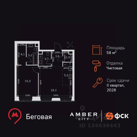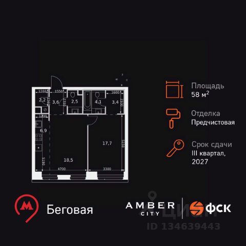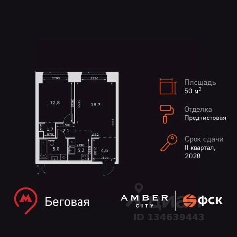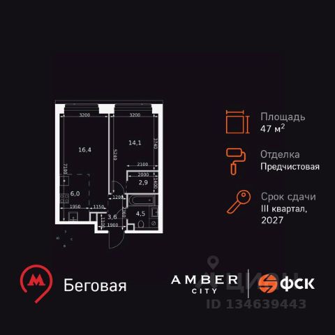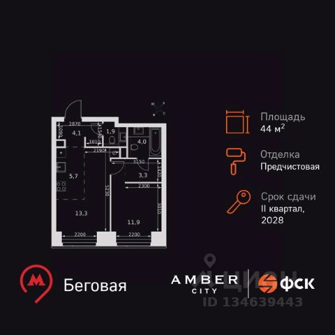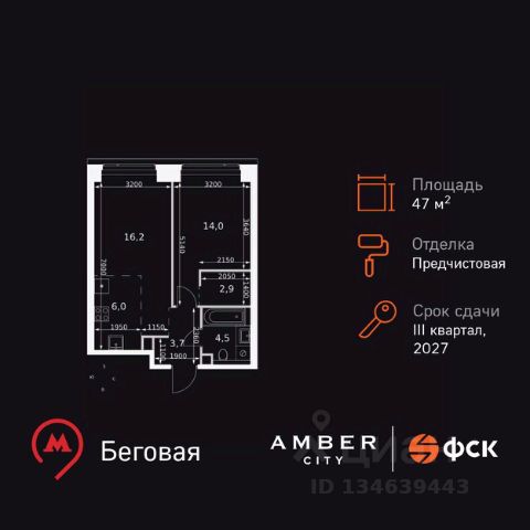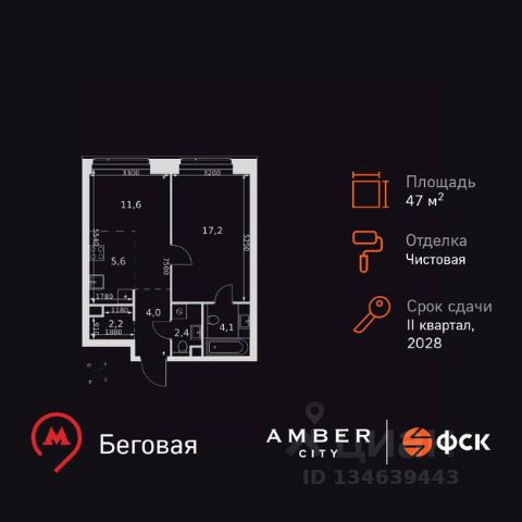 ИПОТЕКА 10% ДЛЯ ВСЕХ БЕЗ НАЦЕНОК! Прямая продажа от застройщика! Жилой Комплекс премиум-класса. Продаётся 2-к квартира номер 654 общей площадью 44.2 кв.м. на 3-м этаже 57 этажного здания. Отделка Whitebox. Цена с учётом скидки. Особенности квартиры: - Мастер-зона с санузлом и гардеробной. Всё для вашего комфорта и удобства, включая личный санузел и гардероб. - Просторная спальня, в которой можно разместить большую кровать. - Линейная планировка - максимальная функциональность и удобство. - Увеличенная ширина окна/окон - больше света и визуального простора. - Увеличенная высота окна - больше воздуха и света. - Гостевой санузел - комфорт и удобство для ваших гостей. - Ниша под стиральную машину - удобство и экономия пространства. - Евроформат - просторное и удобное жилье с отличной планировкой. - Гибкая планировка - создайте пространство по своему вкусу. - Место для игры/занятия спортом - идеальное пространство для активных детей. - Линейная кухня - функциональность и практичность в одном решении. - Проходная кухня-гостиная - идеальное пространство для общения и готовки. - Гардеробная - удобство для хранения и организации вещей. - Ниша под шкаф - компактное и удобное место для вещей. Квартира с предчистовой отделкой (White box). Вам не придется заниматься черновыми и трудоёмкими работы, а чистовую отделку и дизайн - сделайте на свой вкус. Информация о комплексе: Amber City - это не просто квартал. Это место, куда ведут все маршруты, где рождается вдохновение работать и творить, где счастлива семья и жизнь кипит 24/7. Модная архитектура, высокотехнологичные решения и самодостаточная инфраструктура приближают Amber City к лучшим районам Гонконга и Нью-Йорка. Потрясающие виды на Москва-Сити и центр позволяют заряжаться их амбициозностью, не подчиняясь суете. Стремящиеся ввысь небоскребы, благоустроенный парк с зонами отдыха для взрослых и детей, а также многочисленные объекты инфраструктуры возводятся в западной части центра Москвы. Транспортная доступность: Квартал отличается исключительной транспортной доступностью: большая часть значимых мест Москвы находится на расстоянии 15-20 минут. Такое расположение позволит полностью погрузиться в деловую и культурную жизнь столицы и тратить на дорогу только необходимый минимум времени. Общественный транспорт: - Станция метро "Беговая" - 5 минут пешком - Станция "Беговая" (МЦД-1) - 5 минут пешком - Ж/д станция Беговая - 12 минут пешком - Остановка "2-й Хорошёвский проезд" - 3 минуты пешком - Станция метро "Звенигородская" (строящаяся) - 10 минут пешком На автомобиле: - Звенигородское шоссе - 3 минуты - TTK - 5 минут - Хорошёвское шоссе - 9 минут - Садовое кольцо - 12 минут - Красная Пресня - 15 минут - Тверская - 20 минут - Серебряный бор - 8 минут - Строгинский затон - 8 минут - Москва-Сити - 10 минут - Кремль - 20 минут - Аэропорт Шереметьево - 40 минут Внутренняя инфраструктура: Умелая работа над ландшафтом позволила правильно зонировать многоуров Продам 2-комнатную квартиру в новостройке с отделкой рядом с метро Беговая.