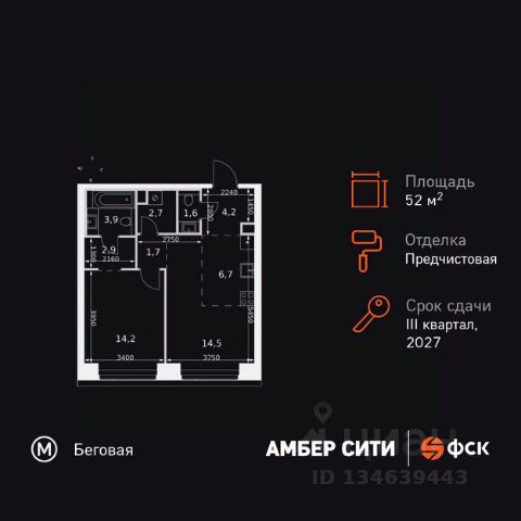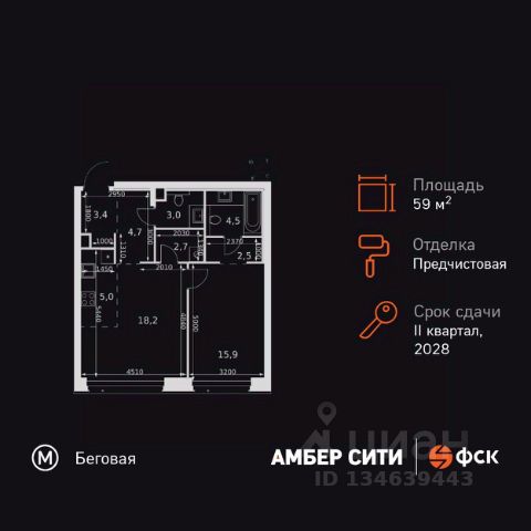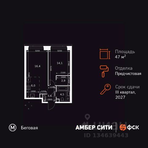 Прямая продажа от застройщика! Успейте забронировать квартиру до повышения стоимости! Жилой Комплекс премиум-класса. Продаётся 2-к квартира номер 654 общей площадью 44.2 кв.м. на 3-м этаже 57 этажного здания. Предчистовая отделка. Цена с учётом скидки. Особенности квартиры: - Организуем показ в удобное для вас время! - Мастер-зона с санузлом и гардеробной. Всё для вашего комфорта и удобства, включая личный санузел и гардероб. - Просторная спальня, в которой можно разместить большую кровать. - Линейная планировка - максимальная функциональность и удобство. - Увеличенная ширина окна/окон - больше света и визуального простора. - Увеличенная высота окна - больше воздуха и света. - Гостевой санузел - комфорт и удобство для ваших гостей. - Ниша под стиральную машину - удобство и экономия пространства. - Евроформат - просторное и удобное жилье с отличной планировкой. - Гибкая планировка - создайте пространство по своему вкусу. - Место для игры/занятия спортом - идеальное пространство для активных детей. - Линейная кухня - функциональность и практичность в одном решении. - Проходная кухня-гостиная - идеальное пространство для общения и готовки. - Гардеробная - удобство для хранения и организации вещей. - Ниша под шкаф - компактное и удобное место для вещей. Квартира с предчистовой отделкой. Вам не придется заниматься черновыми и трудоёмкими работы, а чистовую отделку и дизайн - сделайте на свой вкус. Информация о комплексе: ЖК "Амбер Сити" - вдохновляющий квартал у Москва-Сити с архитектурой мирового уровня. Здесь кипит жизнь 24/7: парки, инфраструктура и виды на центр без городской суеты. Самодостаточная среда для работы, творчества и семьи в духе лучших районов Нью-Йорка и Гонконга. Транспортная доступность: Квартал с исключительной транспортной доступностью: ключевые точки Москвы в 15-20 минутах. Полное погружение в деловую и культурную жизнь столицы с минимальными затратами времени на дорогу. Общественный транспорт: - Метро "Беговая" - 5 минут пешком - Остановка "2-й Хорошёвский проезд" - 3 минуты пешком - Метро "Звенигородская" (строящаяся) - 10 минут пешком На автомобиле: - Москва-Сити - 10 минут - Звенигородское шоссе - 3 минуты - ТТК - 5 минут - Серебряный бор - 8 минут - Садовое кольцо - 12 минут - Кремль - 20 минут - Шереметьево - 40 минут Внутренняя инфраструктура: ЖК "Амбер Сити": многоуровневый ландшафт на 6 гектарах с зелёным бульваром, объединяющим арт-объекты, водные зоны и архитектурные формы. В закрытых дворах на стилобате - детские площадки с сенсорными элементами, зоны отдыха с креслами и настилами для йоги. Навесы с подогревом и зарядками для зимнего сезона. Активности на любой вкус: настольный теннис, петанк, чтение в тишине на оборудованных скамейках. Продуманное пространство для ежедневного отдыха и игр детей и взрослых. Продам 2-комнатную квартиру в новостройке с отделкой рядом с метро Беговая.