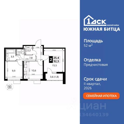 Прямая продажа от застройщика! Семейный жилой район класса Комфорт Плюс Продаётся 2-к квартира номер 246 общей площадью 52.9 кв.м. на 17-м этаже 24 этажного здания. Отделка Whitebox. Цена с учётом скидки. Особенности квартиры: - Линейная планировка - максимальная функциональность и удобство. - Раздельный санузел - больше удобства для всех членов семьи. - Просторная кухня - место для семейных ужинов и кулинарных экспериментов. - Гардеробная - удобство для хранения и организации вещей. - Лоджия - уютное место для отдыха и тишины. - Панорамное остекление лоджии - открывает вид на окружающий мир. Квартира с предчистовой отделкой (White box). Вам не придется заниматься черновыми и трудоёмкими работы, а чистовую отделку и дизайн - сделайте на свой вкус. Информация о комплексе: Сочетание свободного перемещения по внутреннней территории без машин и ощущения абсолютной безопасности благодаря надежным ограждениям - вот что отличает ЖК Южная Битца. На территории комплекса созданы все условия как для активного образа жизни, так и для спокойного времяпрепровождения. Свободно перемещайтесь по внутренней территории в безбарьерной среде! Продуманное зонирование во дворах позволяет отделить тихие зоны для родителей со спящими младенцами и тех, кто хочет почитать на свежем воздухе, от шумных игровых зон. Игровые зоны учитывают возраст детей. Площадки для детей старшего возраста вынесены за пределы дворов. Ощущение уютного дома должно начинаться с подъезда. Мы постарались предусмотреть все нюансы, чтобы наши лифты отвечали самым строгим современным требованиям. А наличие кладовых позволит вам поддерживать идеальный порядок и уют в вашей квартире! Транспортная доступность: В 3 км от МКАД в нескольких минутах езды до трех станций метро: Аннино, Бульвар Дмитрия Донского, улица Старокочаловская и станции МЦД2 - жд Бутово. Внутренняя инфраструктура: Для жителей жилого района "Южная Битца" доступна развитая инфраструктура близлежащих московских районов Чертаново, Южное, Бирюлёво Западное, Северное Бутово и Южное Бутово. Множество образовательных учреждений, объекты здравоохранения, торговые и развлекательные центры, кинотеатры, кафе, рестораны, парки.
