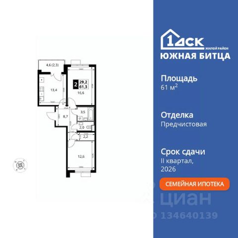 Прямая продажа от застройщика! Семейный жилой район класса Комфорт Плюс Продаётся 2-к квартира номер 146 общей площадью 61.3 кв.м. на 22-м этаже 22 этажного здания. Отделка Whitebox. Особенности квартиры: - Распашная планировка - отличное сочетание удобства и свободы. - Гостевой санузел - комфорт и удобство для ваших гостей. - Раздельный санузел - больше удобства для всех членов семьи. - Просторная кухня - место для семейных ужинов и кулинарных экспериментов. - Гардеробная - удобство для хранения и организации вещей. - Ниша под шкаф - компактное и удобное место для вещей. - Лоджия - уютное место для отдыха и тишины. Квартира с предчистовой отделкой (White box). Вам не придется заниматься черновыми и трудоёмкими работы, а чистовую отделку и дизайн - сделайте на свой вкус. Информация о комплексе: Сочетание свободного перемещения по внутреннней территории без машин и ощущения абсолютной безопасности благодаря надежным ограждениям - вот что отличает ЖК Южная Битца. На территории комплекса созданы все условия как для активного образа жизни, так и для спокойного времяпрепровождения. Свободно перемещайтесь по внутренней территории в безбарьерной среде! Продуманное зонирование во дворах позволяет отделить тихие зоны для родителей со спящими младенцами и тех, кто хочет почитать на свежем воздухе, от шумных игровых зон. Игровые зоны учитывают возраст детей. Площадки для детей старшего возраста вынесены за пределы дворов. Ощущение уютного дома должно начинаться с подъезда. Мы постарались предусмотреть все нюансы, чтобы наши лифты отвечали самым строгим современным требованиям. А наличие кладовых позволит вам поддерживать идеальный порядок и уют в вашей квартире! Транспортная доступность: В 3 км от МКАД в нескольких минутах езды до трех станций метро: Аннино, Бульвар Дмитрия Донского, улица Старокочаловская и станции МЦД2 - жд Бутово. Внутренняя инфраструктура: Для жителей жилого района "Южная Битца" доступна развитая инфраструктура близлежащих московских районов Чертаново, Южное, Бирюлёво Западное, Северное Бутово и Южное Бутово. Множество образовательных учреждений, объекты здравоохранения, торговые и развлекательные центры, кинотеатры, кафе, рестораны, парки.