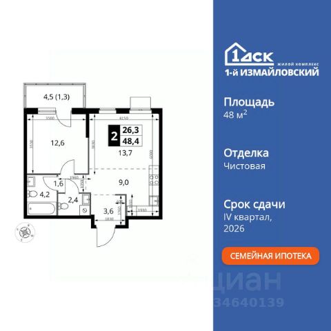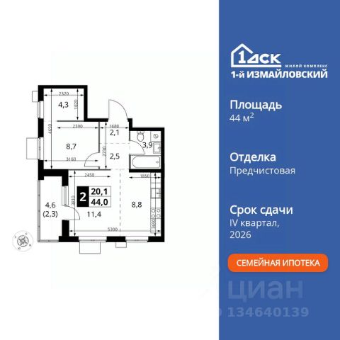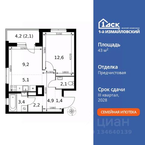 Просторная 2-комнатная квартира для молодой семьи. Общая площадь - 70.7 м2, удобная планировка, кухня-гостиная 25.2 м2. Панорамные виды из окон на две стороны - на национальный парк "Лосиный остров" и благоустроенный внутренний двор. Условия покупки: - Скидка при полной оплате - 10% - Ипотека от 3,5% на весь срок или 0,11% на первый год - Рассрочка без процентов - Trade-in с проживанием на время строительства дома НАЗАР - шесть домов бизнес-класса высотой 24-43 этажа. Проект расположен рядом с национальным парком "Лосиный остров" и парком "Сокольники". В продаже квартиры с мастер-спальнями, кухнями-гостиными, открытыми террасами, просторными кладовыми и ванными с окном. Форматы - от светлых студий 21,6 м2 до семейных 4-комнатных 125,5 м2. Часть лотов - с предчистовой отделкой White Box. Транспортная доступность: - Метро "Бульвар Рокоссовского" и МЦК - 2 мин. пешком - Северо-Восточная хорда - 3 мин. на автомобиле - Третье транспортное кольцо - 15 мин. на автомобиле - Садовое кольцо - 18 мин. на автомобиле Инфраструктура: В составе проекта появится собственный детский сад и торгово-развлекательный центр с акцентом на шопинг и досуг. На первых этажах домов откроются кафе, пекарни, магазины и службы сервиса. В районе Богородское находятся престижные школы, медцентры, магазины и спортивные клубы. Продается 2-комнатная квартира в новостройке с отделкой рядом с метро Черкизовская.