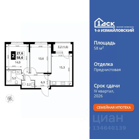 Просторная 2-комнатная квартира для молодой семьи. Общая площадь - 70.7 м2, удобная планировка, кухня-гостиная 25.2 м2. Панорамные виды из окон на две стороны - на национальный парк "Лосиный остров" и благоустроенный внутренний двор. Условия покупки: - Скидка при полной оплате - 10% - Ипотека от 3,5% на весь срок или 0,11% на первый год - Рассрочка без процентов - Trade-in с проживанием на время строительства дома НАЗАР - шесть домов бизнес-класса высотой 24-43 этажа. Проект расположен рядом с национальным парком "Лосиный остров" и парком "Сокольники". В продаже квартиры с мастер-спальнями, кухнями-гостиными, открытыми террасами, просторными кладовыми и ванными с окном. Форматы - от светлых студий 21,6 м2 до семейных 4-комнатных 125,5 м2. Часть лотов - с предчистовой отделкой White Box. Транспортная доступность: - Метро "Бульвар Рокоссовского" и МЦК - 2 мин. пешком - Северо-Восточная хорда - 3 мин. на автомобиле - Третье транспортное кольцо - 15 мин. на автомобиле - Садовое кольцо - 18 мин. на автомобиле Инфраструктура: В составе проекта появится собственный детский сад и торгово-развлекательный центр с акцентом на шопинг и досуг. На первых этажах домов откроются кафе, пекарни, магазины и службы сервиса. В районе Богородское находятся престижные школы, медцентры, магазины и спортивные клубы. Продается 2-комнатная квартира в новостройке с отделкой рядом с метро Черкизовская.