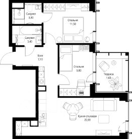 О квартире Продаётся 2-комнатная квартира общей площадью 63 кв.м. с отделкой white box. Квартира расположена на 2 этаже корпуса 5.2 в жилом комплексе бизнес-класса "Среда на Лобачевского" в пешей доступности от метро "Аминьевская". О жилом комплексе "Среда на Лобачевского" полностью соответствует критериям современного жилого пространства. Взяв за основу рациональный подход, мы гармонично соединили дизайн, актуальные тренды и функциональность. Продуманный современный экстерьер и функциональные планировки внутри, приватные пространства и разнообразные досуговые зоны для каждого члена семьи — все это "Среда на Лобачевского". Инфраструктура Район отлично развит и наполнен жизнью, здесь уже есть вся необходимая инфраструктура — детские сады, школы, медучреждения, торговые центры, благоустроены парки для прогулок и отдыха, удобен и легкодоступен городской транспорт. Рядом расположены учебные корпуса крупных университетов — МГУ, МГИМО и РАНХиГС. Школы и детские сады в районе занимают высокие позиции в городских рейтингах, поэтому вам не придется беспокоиться о качестве образования детей. Как и об отдыхе: поблизости расположены живописные пруды, реки и парки. Это Парк Олимпийской деревни, Парк имени 50-летия Октября, Мещерский парк и Очаковские пруды. Теперь поставить галочки в еженедельном чек-листе "спорт-прогулки-встречи с друзьями" можно, не покидая любимый район. Особенности Особое внимание в проекте уделяется созданию функциональных пространств не только внутри дома, но и за его пределами. В ландшафтном парке "Среды на Лобачевского" расположены крытые зоны для спокойного времяпровождения, места для активного отдыха и спорта, коворкинг, соседский комьюнити-центр, водные объекты. —Ландшафтный парк во дворе. —Водный сад с зонами отдыха. —Зоны коворкинга. —Дизайнерские гранд-лобби. —Бесключевой доступ. —Подземный паркинг.