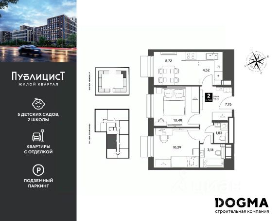 - Просторные семейные квартиры с высокими потолками 3.3 м в вариантах черновой, предчистовой и чистовой отделки.