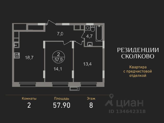 Продается двухкомнатная квартира в девятиэтажном монолитном доме жилого комплекса "Резиденции Сколково". Общая площадь квартиры - 53,4 кв. м, этаж 2 из 9. Срок сдачи - 3 квартал 2026 года. ТОЛЬКО ДО 31 МАРТА выгодные условия на приобретение квартиры в ипотеку или рассрочку. Звоните - и мы подберем оптимальное предложение под ваш запрос! Квартира реализуется с одним из пяти видов отделки на выбор: - White-box - это возможность создать уникальный интерьер вашей квартиры, выбирая финальные отделочные материалы и мебель по вашему вкусу. - Лаконичный минимализм (Bussines либо Bussines Plus) - характеризуется мягкими натуральными цветами, высокой функциональностью, лаконичностью и комфортом. - Французская классика (Bussines либо Bussines Plus) - сдержанность цветовых решений и отсутствие броских деталей формируют чистое пространство, которое позволяет вам придать интерьеру индивидуальный стиль при помощи дополнительных элементов, ознакомиться с примером визуализации вы можете благодаря 3D туру в галерее. ЖК "Резиденции Сколково" - это современный проект бизнес-класса, расположенный в престижном районе Сколково, у западной границы Москвы. Транспортная доступность: - 0 км от МКАД - 10 минут на личном авто до метро "Озёрная" Солнцевской линии - 15 минут на личном авто до Москва-Сити по Кутузовскому проспекту - 20 минут на личном авто до центра по проспекту Генерала Дорохова - 24 минут на личном авто до центра по Мичуринскому проспекту Безопасность: Огороженная, закрытая территория, круглосуточное видеонаблюдение, контроль доступа во внутренний двор. Благоустройство и инфраструктура: Масштабное озеленение в концепции "двора-парка" и множество площадок отдыха для взрослых и детей. В 5 минутах ходьбы расположен Мещерский лесопарк. В жилом комплексе уже построены и работают 2 муниципальных детских сада с бассейном, планируется строительство 1 школы. В непосредственной близости - частные и муниципальные детские сады и школы, кафе и рестораны, продуктовые магазины, салоны красоты и другие готовые объекты городской инфраструктуры. Авторская архитектура: Авторская концепция архитектуры: панорамное остекление, французские балконы, стильные просторные лобби. Входные группы на уровне земли. Для удобства жителей на первых этажах предусмотрены помещения для колясок и на -1 этажах для хранения велосипедов.