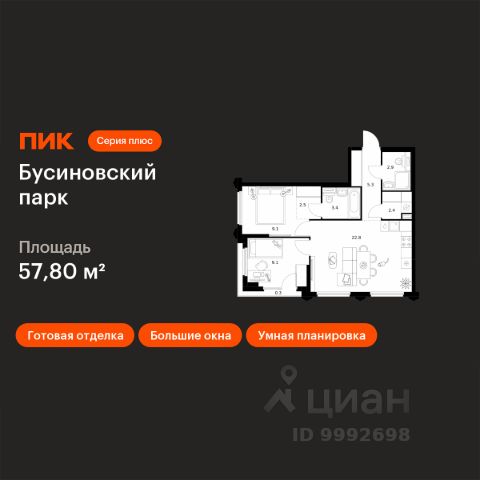 Продаётся 2-комн. квартира площадью 52 кв.м на 6 этаже 24 этажного дома (Корпус 22.2, Секция 2) проекта ПИК Бусиновский парк. Светлый просторный подъезд на уровне земли, функциональная планировка, большие окна, c отделкой. Бусиновский парк" расположен на севере Москвы — в районе Западное Дегунино, в 20 минутах пешком от метро "Ховрино". Яркий и современный образ жилого квартала создают башни-доминанты — у каждой из них свой уникальный фасад, разработанный российскими архитектурными бюро. Проектом предусмотрены входы на уровне земли, без ступеней, порогов и пандусов — так удобнее и безопаснее. У подъездов будет два выхода: на улицу и во двор-парк. В наших дворах мы установим столы и лавочки со встроенными зарядными устройствами. Не нужно будет возвращаться домой, чтобы зарядить смартфон или ноутбук: можно весь день работать на свежем воздухе В проекте появится масштабное пространство площадью 4Га - МультиХаб "Атлас". Для юных жителей появится большая игровая площадка с горными хребтами для лазания, ручьём золотоискателей, лесным фортом и песочной зоной для малышей. Дети смогут придумывать здесь бесчисленное количество игр независимо от своего возраста. Взрослые смогут отдохнуть в дождевом саду — это удивительное место, где после дождя появляются маленькие живописные озерца. Для спорта — уличные тренажёры, площадки для командных игр, столы для пинг-понга и шахмат. Владельцы собак оценят место для прогулок с питомцем. А специально для подростков мы спроектировали уникальное пространство для отдыха — памп-трек для катания, большой навес, амфитеатр и сетки для отдыха, где они смогут собираться вместе в любую погоду. В лобби "Бусиновского парка" будет удобная зона ожидания, где можно встретить друзей, курьера или дождаться такси, а также гостевая туалетная комната со столиком для пеленания. На территории проекта предусмотрены двухуровневый подземный и наземный паркинги. В паркингах установлены надёжные системы вентиляции, пожаротушения и круглосуточного видеонаблюдения. А ещё для наших паркингов мы разработали систему навигации, которая помогает быстро найти автомобиль. На подземных этажах "Бусиновского парка" предусмотрены вместительные кладовые. В них жители проекта смогут хранить сезонные и габаритные вещи, которые занимают много места в квартире. В корпусе 1.4 появится общественная терраса на 30-м этаже. Доступ сюда есть только у жителей, поэтому вы не встретите в этом пространстве посторонних людей. Здесь можно заниматься спортом, отдохнуть за чтением книги или создать собственный сад. А ещё отсюда открываются красивые виды на город. В "Бусиновском парке" предусмотрены квартиры с панорамным остеклением, различными балконами, эркерами, угловыми окнами и большим количеством окон — до пяти в одной комнате. В таких квартирах широкий угол обзора: можно пить кофе, наблюдая за жизнью на улице и наслаждаясь ощущением простора. Ещё больше комфорта придаст мягкий солнечный свет, который равномерно осветит всю квартиру. Артикул 9538