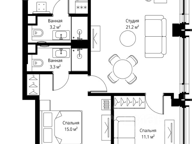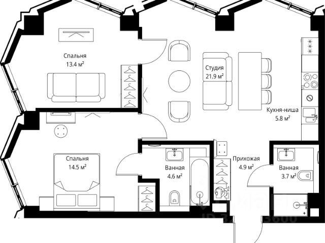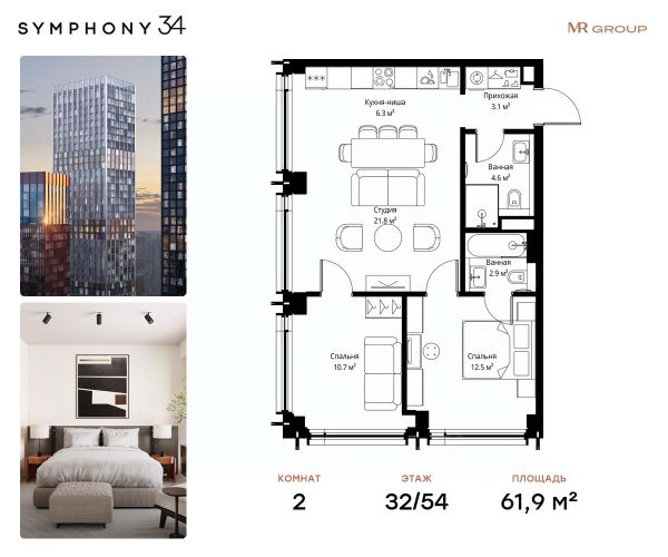 Дом сдан. Ключи в день покупки! В продаже 2-комнатная квартира площадью 58.70 м² с предчистовой отделкой на 5 этаже 43 этажного дома в корпусе Сильвер. ЖК Симфония 34 - концептуально новый жилой комплекс премиум-класса с подземной парковкой, состоит из четырех башен высотой 36 - 54 этажа. Квартиры сдаются с базовой (предчистовой) отделкой MR BASE или дизайнерской чистовой отделкой MR READY. Высота потолков 3 - 6 метров, окна высотой до 2,6 м. Более 100 кладовых в подземной части ЖК и более 500 на этажах. Безопасность - Система контроля входа на территорию комплекса, биометрия - Система автоматического водяного пожаротушения и противопожарного водопровода, система пожарной вентиляции - Доступ на парковку при помощи системы распознавания автомобильных номеров, карточка для контроля доступа резидентов - Система видеонаблюдения - Круглосуточная связь через приложение, телефон, голосовые сообщения с охраной, консьержем, call-центр. Расположение Пешком - 6 минут до метро "Дмитровская" - 15 минут до Тимирязевского парка На машине - 5 минут до Савеловского вокзала и Аэроэкспресса в Шереметьево - 10 минут до Москва-Сити и Садового кольца Благоустройство - 70% территории отведены под зеленые насаждения и ландшафтный дизайн - Приватный Японский сад - Детские площадки с зонированием по возрасту - Clubhouse для резидентов - Wellness & SPA - Зона для пикника, зона с гамаками - Центральное лобби, ресторан, коммерческие помещения - Дополнительный вход/выход на территорию комплекса Окружение - В 10 минутах от Symphony 34 находится дизайн-завод Flacon, где регулярно проходят культурно-образовательные и развлекательные мероприятия - Тимирязевский парк расположен в 850 м. Площадь парка 232 га - Рядом расположен парк "Дубки", площадью 16,5 га. - В 15 минутах расположен Хлебозавод 9. Здесь находятся шоурумы брендов, кафе разных кухонь мира, образовательные проекты и площадки для мероприятиКомпания MR предлагает своим клиентам специальные условия приобретения квартир в рамках программ ипотечного кредитования от банков-партнеров.