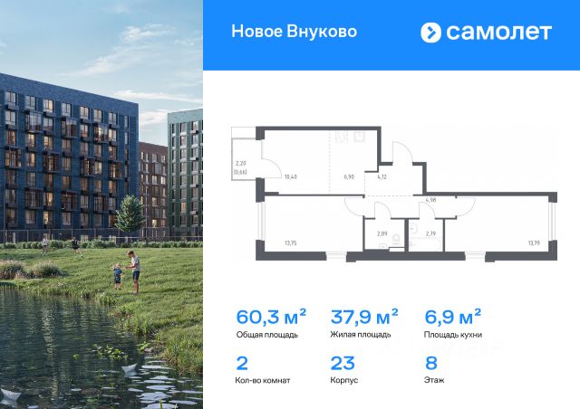 Строим кварталы для жизни с заботой о будущем. Предлагается 2-комнатная квартира комфорт-класса 57,45 кв.м в корпусе 30 на 3 этаже, в ЖК "Новое Внуково" Квартира с чистовой отделкой. Доступность дополнительных опций уточняйте у застройщика. Приобрести квартиру возможно по специальным акциям от застройщика, с текущими условиями акций можно ознакомиться в блоке "Акций". Цена динамическая и может отличаться, уточняйте актуальность у застройщика. "Новое Внуково" — это жилой комплекс в Новой Москве, у подножия берега реки Незнайка. Поблизости — живописные места для прогулок: народный парк "Ручеек", усадьба Старо-Никольское, Валуевский и Ульяновский лесопарки. Часть домов сдана и внутри района уже открыт детсад с бассейном, а в ближайшее время откроются еще 3 детсада, 2 школы и поликлиника. На территории проекта будет построен первый в России Центр Российской Федерации Баскетбола, где будут площадки с трибунами, тренажерный зал, кафе и конференц-зал. Дворы-парки закрыты от машин и посторонних. На территории — прогулочный маршрут вдоль реки Незнайка и набережная с шезлонгами и качелями для отдыха. Также здесь появится плейхаб "Незнайка на Луне", площадь для мероприятий с сухим фонтаном, летним кинотеатром и кафе. В жилом комплексе — монолитные дома высотой от 6 до 14 этажей. Фасады облицованы кирпичом природных оттенков.