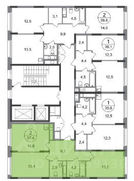 Двухкомнатная квартира 52,3 м² в ЖК Лучи (Солнцево)