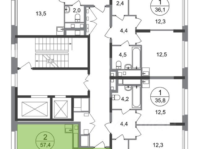 Квартира с чистовой отделкой от застройщика и двумя окнами в одной из комнат