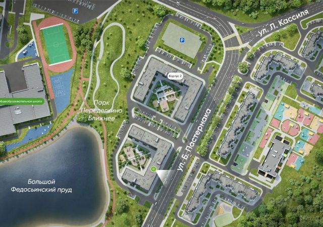 Район зелёный. Вокруг много парков: в 10 минутах езды находится Мещерский лесопарк с велодорожками и зонами для пикников, есть Чоботовский и Говоровский леса с детскими и спортивными площадками, неподалёку Тропарёвский парк. В пешей доступности Центральный парк с большим Солнцевским прудом. Тут дышится легко, промзон поблизости нет, зато много лесов