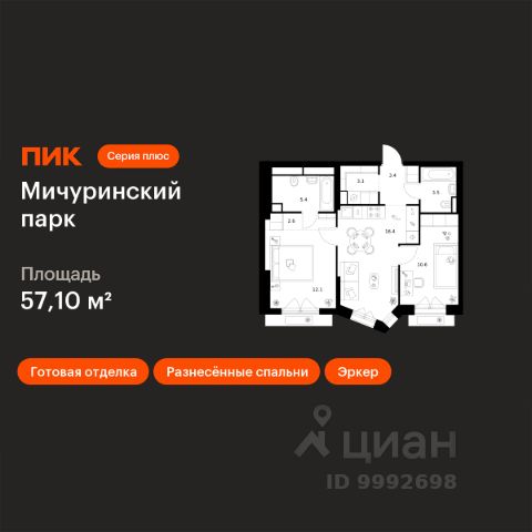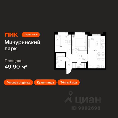 Цена указана с учётом скидки при 100%-й оплате, несубсидированной ипотеке, рассрочке (кроме программы "Рассрочка 0%"). В жилом квартале, расположенном на границе с природным заказником "Долина реки Очаковки", продаётся 2-комнатная квартира площадью 51.70 кв.м с отделкой white box. Квартира расположена на 34 этаже 37-этажного корпуса 5 в жилом комплексе бизнес-класса Левел Мичуринский (компания Level Group/Левел групп). Отличная транспортная доступность: - от 10 мин. пешком до станции метро "Мичуринский проспект" - 15 мин. пешком до станции метро "Аминьевская" - 7 мин. на авто до МКАД - 10 мин. на авто до ТТК - 15 мин. на авто до Москва-Сити Продуманный архитектурный проект: - Выразительная архитектура от известных бюро: корпуса 1-6 - СПИЧ, корпуса 7-13 - Borisov Architects; - Из окон открываются живописные виды на парки, Москва-Сити и МГУ; - Высокие потолки до 6,35 м; - Стильные лобби с окнами в пол и высокими потолками до 4,7 м; - С каждого этажа дома на лифте можно спуститься в подземный отапливаемый паркинг. Расположение: Жилой комплекс Левел Мичуринский строится в одном из самых зелёных районов Москвы - Очаково-Матвеевское. Этот уголок столицы идеален для поддержания здорового образа жизни. В шаговой доступности от проекта находятся заказник "Долина реки Очаковки" - 1 мин. пешком и Очаковский парк - 7 мин. пешком. На велосипеде можно добраться до таких парков, как "Событие", парк Олимпийской деревни, парк 50-летия Октября и парк Школьников. В 15 минутах езды на авто расположено более 30 детских садов (из них 14 в пешей доступности), 32 школы (из них 13 в пешей доступности) и 14 вузов. Также в ближайшем окружении - более 25 медицинских учреждений, 11 спортивных клубов и 22 продуктовых супермаркета. Внутренняя инфраструктура: На территории жилого комплекса строится три детских сада и школа. На первых этажах домов откроется супермаркет, фитнес-центр, ресторан, кафе и другие сервисы. Подземные этажи займут паркинги: трёхуровневые - в этапах 1 и 2, одноуровневый - в этапах 3 и 4. Преимущества проекта: - 4,5 га благоустроенной территории с видовым мостом, уличным кинотеатром, зонами для тихого отдыха, работы, воркаута, площадки для петанка, футбола, настольного тенниса и пляжного волейбола. - Дизайнерские лобби с панорамным видом на двор, мойками для лап животных и комфортными зонами ожидания. - Безопасность жителей: круглосуточное видеонаблюдение всех зон общего пользования (лобби, лифты, паркинги, детские площадки), система контроля доступа, управление видеодомофоном через мобильное приложение, единый ключ доступа на территорию жилого комплекса. - Технологии и комфорт: высокоскоростной Wi-Fi в лобби и на придомовой территории, автоматическая система контроля и учёта ресурсов, абонентская связь с консьержем, распознавание номеров автомобилей при въезде в паркинг и выезде из него.