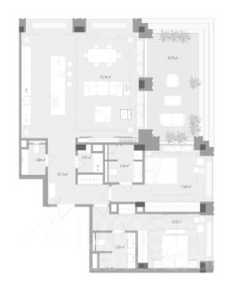 Пентхаус с 2 спальнями (134,4 м2) и премиальной финишной отделкой располагается на 8 этаже Клубного дома TURGENEV и обладает выходом на собственную террасу на кровле (123,80 м2). По всей длине внешнего периметра пентхауса - вдоль двух спален и просторной кухни-столовой-гостиной (58,03 м2) с дровяным камином и зоной кабинета, протянулась открытая галерея (7,50 м2) с видом на северо-западную часть Москвы. Панорамные окна мастер-спальни (16,70 м2) выходят на северную сторону - тихий Селиверстов переулок, а окна второй спальни (18,70 м2) на западную. При мастер-спальне располагается ванная комната с двумя раковинами (9,72 м2), при второй спальне - душевая комната (8,30 м2). У каждой спальни есть собственная гардеробная (5,02 м2 и 6,10 м2). В квартире также есть гостевой санузел (1,64 м2) и постирочная. Дом сдан.