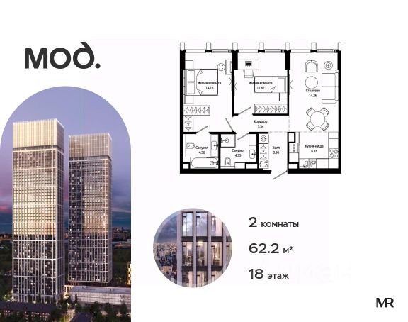 Прямая продажа от застройщика. Продается 2-комнатная квартира площадью 80.30 м² с предчистовой отделкой в ЖК Мод на 7-м этаже 7 этажного дома. Мод - жилой комплекс премиум-класса в историческом районе Москвы Марьина Роща, состоящий из трех Клубных домов (9 этажей) и трёх разноэтажных башен (44-55 этажей). Клубные дома (6-9 этажей) со сложными яркими фасадами носят женские имена, подразумевая красоту, заботу, постоянное движение, многогранность личности и умение создавать уединение и уют даже в самом центре событий. Девятиэтажные корпуса с фасадами из натурального камня на уровне первого этажа. Выше — панели из натуральных меди и латуни, которые со временем окисляются и меняют внешний вид. На первых трех этажах — стилобаты с фитнес и спа-центрами. Закрытая территория жилого комплекса, продуманное благоустройство, образовательный центр с детским садом создают приватное пространство для тихой семейной жизни, а городская площадь с фонтанами, ресторан, супермаркет, коммерческая инфраструктура на первых этажах привносят созвучную с ритмом города динамику. Преимущества проекта: - В шаговой доступности новый деловой кластер Москвы - Выразительная авторская архитектура - Единственные в Москве фасады башен из натурального камня - Панорамное остекление и высота потолков до 4,8 м - Квартиры и апартаменты с отделкой MR Base - Многоуровневое благоустройство с зонированием на закрытой территории - Многофункциональный образовательный детский центр с детским садом - Двухуровневый подземный паркинг Транспортная доступность: - 5 минут пешком до станции метро "Марьина Роща" - 3 минуты до ТТК - 15 минут до Цветного бульвара Компания MR предлагает своим клиентам специальные условия приобретения квартир в рамках программ ипотечного кредитования от банков-партнеров.