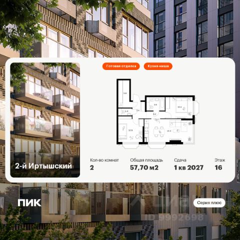 Продаётся 2-комн. квартира площадью 49,3 кв.м на 8 этаже 20 этажного дома (Корпус 1.7, Секция 7) проекта ПИК 2-й Иртышский. Светлый просторный подъезд на уровне земли, функциональная планировка, большие окна, c отделкой. "2-й Иртышский" возводится на востоке Москвы, между тремя станциями метро "Щелковская", "Черкизовская" и "Бульвар Рокоссовского". Проект включает жилые корпуса с индивидуальной архитектурой, школу и детский сад. Проект состоит из зданий разной высоты и разной по характеру архитектуры. Узнаваемой доминантой квартала станет башня из стекла и металла, напоминающая водопад. Квартал расположен в окружении нескольких знаковых рекреационных зон столицы. Вам понадобится всего несколько минут, чтобы оказаться в атмосфере спокойствия и слияния с природой. Всего 15 минут пешком, и вы в "Сиреневом саду", а дорога до национального парка "Лосиный остров" или Гольяновского пруда займёт 6 минут на авто. До Черкизовского детского парка и "Усадьбы Измайлово" можно доехать за 15 минут. До станции "Черкизовская" можно дойти пешком за 25 минут или доехать на общественном транспорте за 20. Дорога до станций "Бульвар Рокоссовского" и "Щёлковской" займёт 25 минут на общественном транспорте. Автомобилисты оценят удобные выезды на Щёлковское шоссе и СВХ. Путь до МКАД займет около 14 минут, до ТТК - 20. Артикул 988624 Купить 2-комнатную квартиру в новостройке с отделкой рядом с метро Щелковская.