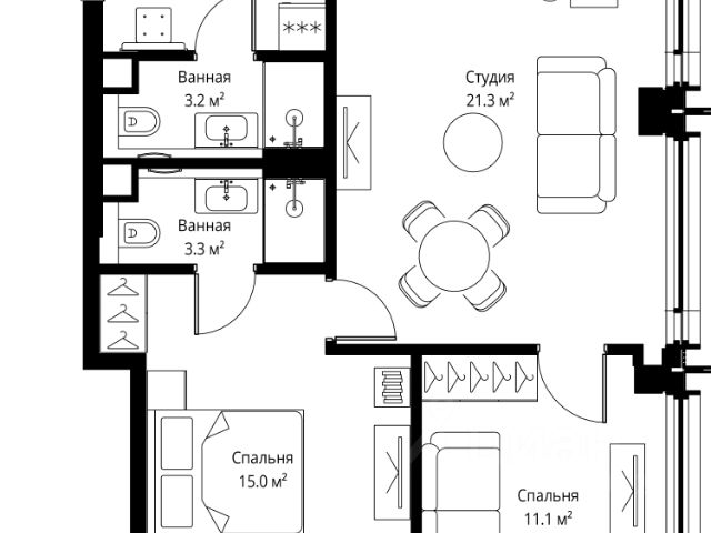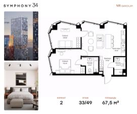 Дом сдан. Ключи в день покупки! В продаже 2-комнатная квартира площадью 58.70 м² с предчистовой отделкой на 5 этаже 43 этажного дома в корпусе Сильвер. ЖК Симфония 34 - концептуально новый жилой комплекс премиум-класса с подземной парковкой, состоит из четырех башен высотой 36 - 54 этажа. Квартиры сдаются с базовой (предчистовой) отделкой MR BASE или дизайнерской чистовой отделкой MR READY. Высота потолков 3 - 6 метров, окна высотой до 2,6 м. Более 100 кладовых в подземной части ЖК и более 500 на этажах. Безопасность - Система контроля входа на территорию комплекса, биометрия - Система автоматического водяного пожаротушения и противопожарного водопровода, система пожарной вентиляции - Доступ на парковку при помощи системы распознавания автомобильных номеров, карточка для контроля доступа резидентов - Система видеонаблюдения - Круглосуточная связь через приложение, телефон, голосовые сообщения с охраной, консьержем, call-центр. Расположение Пешком - 6 минут до метро "Дмитровская" - 15 минут до Тимирязевского парка На машине - 5 минут до Савеловского вокзала и Аэроэкспресса в Шереметьево - 10 минут до Москва-Сити и Садового кольца Благоустройство - 70% территории отведены под зеленые насаждения и ландшафтный дизайн - Приватный Японский сад - Детские площадки с зонированием по возрасту - Clubhouse для резидентов - Wellness & SPA - Зона для пикника, зона с гамаками - Центральное лобби, ресторан, коммерческие помещения - Дополнительный вход/выход на территорию комплекса Окружение - В 10 минутах от Symphony 34 находится дизайн-завод Flacon, где регулярно проходят культурно-образовательные и развлекательные мероприятия - Тимирязевский парк расположен в 850 м. Площадь парка 232 га - Рядом расположен парк "Дубки", площадью 16,5 га. - В 15 минутах расположен Хлебозавод 9. Здесь находятся шоурумы брендов, кафе разных кухонь мира, образовательные проекты и площадки для мероприяти Купить 2-комнатную квартиру в новостройке с отделкой рядом с метро Тимирязевская.