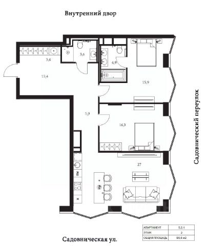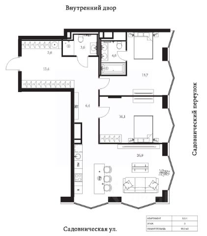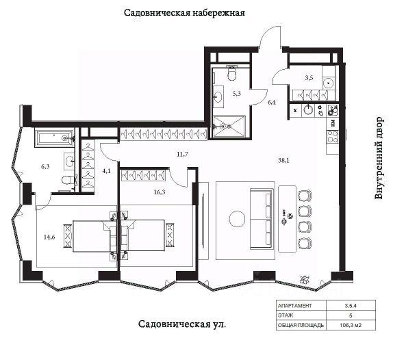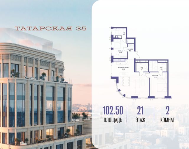 Скидка до 15% действует до 25.12.2025 г. при 100% оплате и не субсидированной ипотеке. Продается просторная квартира площадью 115.90 м2 в жилом комплексе ТАТАРСКАЯ, 35. Квартира находится в 2 секции корпуса 3. Этаж 11-й из 23. Квартира без чистовой отделки, с просторной кухней 48.70 м2. Жилая площадь 30.90 м2. Высота потолка от 3.50. ТАТАРСКАЯ, 35 - новая архитектурная доминанта Замоскворечья, достопримечательность на фотопанорамах исторического центра Москвы. Элитный дом, созданный для тех, кто умеет смотреть далеко вперед, мыслить масштабно и воплощать собственный сценарий жизни. Вдохновляющие прогулки по променаду набережной, в уютных переулках, в парке "Зарядье", в Михайловском саду и Репинском сквере. Наслаждение высоким искусством в Третьяковской галерее, Доме Музыки, театральном музее им. А.А. Бахрушина, театре на Малой Ордынке. За окнами - Кремль, высотка на Котельнической, панорамы Замоскворечья и острова Балчуг, огни Садового кольца. Собственные спорт-румы, детская, репетиторская, бьюти-пространства, деловое пространство с коворкингом, переговорной и сигарной. Собственный трехуровневый фитнесс-центр с бассейном, тренажерным залом, сауной, хаммамом, массажным кабинетом. Площадь двора - 1,8 га, половина территории покрыта деревьями, кустарниками и лужайками. Дом расположен внутри Садового кольца - отсюда в считанные минуты можно добраться до важнейших мест столицы: достопримечательностей и парков, театров и ресторанов, деловых и административных центров. 7 минут до Кремля на автомобиле, 15 минут до Третьяковской галереи и 8 минут до Садового кольца пешком. Планировочные решения и визуализации предварительны, возможны изменения. 2-комнатная квартира в новостройке с отделкой рядом с метро Третьяковская.
