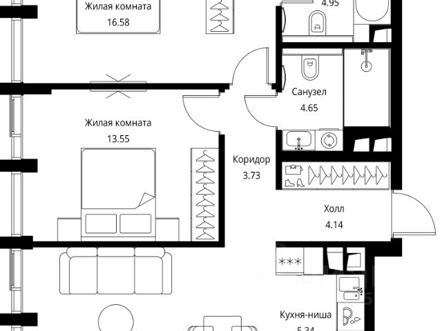 Продаётся 2-комнатная квартира 54 м². В жилом районе ALIA на 14-м этаже 28-этажного дома. Жилой район ALIA — это дома бизнес-класса у слияния Москвы-реки и Сходни. ALIA находится в Покровском-Стрешневе, экологически чистом районе на престижном северо-западе столицы. Район возводится на бывшей территории Тушинского аэрополя, где никогда не было промышленного производства. ALIA — это район разностороннего развития, спроектированный по принципу WORK.LIVE.PLAY.LEARN. Это "15-минутный город", где вся необходимая для комфортной жизни инфраструктура — на расстоянии приятной прогулки. У района удобное расположение: отсюда меньше 10 минут пешком до станций метро "Спартак" и "Тушинская" и всего полчаса на автомобиле до центра города или аэропорта Шереметьево. Архитектурную концепцию ALIA разработало бюро SOM (Skidmore, Owings & Merrill), авторы знаменитой "Бурдж-Халифа". В ALIA больше 140 планировочных решений, среди которых — редкие для Москвы форматы: квартиры с окном в ванной, пентхаус, сити-юниты и таунхаусы. Почти половина территории района отдана под благоустройство. В ALIA три парка: Линейный парк с кафе и магазинами, Центральный парк с амфитеатром, сухим фонтаном и большим плейхабом для детей всех возрастов и Прибрежный парк на собственной набережной, одной из самых длинных в Москве. В каждом урбан-блоке — закрытый внутренний двор с гипоаллергенными растениями и детской площадкой. В лобби каждого жилого корпуса в ALIA оборудована зона ожидания, колясочная, гостевой санузел и лапомойка для домашних животных. За стойкой ресепшена резидентов и их гостей встречает консьерж. Центральное лобби урбан-блока — это стильное общественное пространство с коворкингом, лаундж-зоной и кофе-пойнтом. Это "вторая гостиная" жителей урбан-блока и одно из мест, где формируется комьюнити ALIA. Два ключевых объекта инфраструктуры в ALIA — это спорткомплекс "Чкалов Арена", где представлены 25 видов спорта, и самый большой в стране бизнес-парк класса A, благодаря которому району обеспечено быстрое развитие.