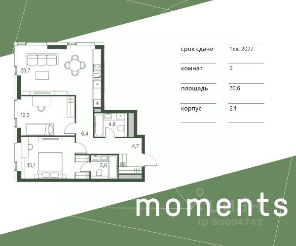 Цена указана с учётом скидки при 100%-й оплате, несубсидированной ипотеке, рассрочке (кроме программы "Рассрочка 0%"). Продается 2-комнатная квартира площадью 62.10 кв. м с отделкой. Квартира находится на 4 этаже 26-этажного корпуса 4, в новом жилом комплексе бизнес-класса Level Войковская, расположенном рядом с живописным заповедником "Покровское-Стрешнево" (застройщик - компания Level Group/Левел групп). Прекрасная транспортная доступность - 7 мин. пешком до станции МЦК "Балтийская"; - 15 мин. пешком до станции метро "Войковская"; - 8 мин. на машине до ТТК; - 15 мин. на машине до центра Москвы; - 20 мин. на машине до Москва-Сити. Продуманный архитектурный проект - стильная архитектура от мастерской Фефелова В. В.; - панорамные виды на парки, Химкинское водохранилище и Останкинскую башню; - лобби с высотой потолков до 6,45 метров; - более 20 видов планировочных решений, включая редкие форматы квартир с террасой и увеличенной высотой потолков до 5,42 метров; - 2 варианта дизайнерской отделки в корпусе 4, предлагаются как дополнительная опция к отделке white box: стиль Modern в светлых холодных тонах и стиль Classic в нейтральной бежевой гамме. Квартиры в корпусах 3 и 5 сдаются без отделки. Расположение Level Войковская строится в престижном Северном округе Москвы. Развитая инфраструктура и живописная природа переплетаются в единый ансамбль, столь значимый для комфортной жизни. Войковский район окружают парки и набережные. В шаговой доступности - парк "Покровское-Стрешнево", не более 15-ти минут на велосипеде занимает путь до Тимирязевского парка и 9-ти минут до парка усадьбы Михалково. Рядом более 60 школ, 75 дошкольных учреждений, 17 государственных и 6 частных вузов, 25 супермаркетов, 4 торговых центра, среди которых ТЦ "Метрополис" и ТЦ "Авиапарк". Внутренняя инфраструктура На территории жилого комплекса предусмотрены коммерческие помещения: кафе, ресторан, пекарня и другие сервисы откроются на первых этажах корпусов. Для жителей будет доступен отапливаемый подземный паркинг на 244 машино-места с доступом с любого этажа на лифте. На территории паркинга будет расположено 125 кладовых помещений для хранения сезонного инвентаря. Лобби и благоустройство Дизайн лобби Level Войковская создан совместно с бюро BLANK. Это уютные гостиные, где хочется задержаться. Теплая цветовая гамма, ресепшен, зоны ожидания, лапомойки и гостевые санузлы - каждая деталь превращает лобби в комфортное продолжение вашего дома. 1,15 га площади в первых двух этапах строительства отведено под приватный внутренний двор, который спроектирован совместно с бюро "Правда". Детские площадки для всех возрастов, спортивные пространства для йоги, воркаута и петанка, уютные зоны для тихого отдыха или работы. Здесь утро начинается с вдохновения, а вечер наполнен приятными моментами. Лифты Комфортное перемещение внутри жилого комплекса будут обеспечивать надёжные лифты с доступом в паркинг с жилых этажей. В каждом корпусе предусмотрено по 3 грузопассажирских лифта. Купить 2-комнатную квартиру в новостройке с отделкой рядом с метро Войковская.