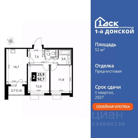 ДОПОЛНИТЕЛЬНАЯ СКИДКА ДО 10% В ОФИСЕ ПРОДАЖ! Прямая продажа от застройщика! Жилой Комплекс класса Комфорт Плюс. Продаётся 2-к квартира номер 852 общей площадью 49.1 кв.м. на 14-м этаже 24 этажного здания. Отделка Whitebox. Особенности квартиры: - МЦД-5 в пешей доступности - Квартал с собственной набережной - Свои 2 детских сада и школа - Мастер-зона с гардеробной. Просторное место для отдыха и удобного хранения вещей. - Угловая планировка - больше пространства для ваших идей. - Окно в ванной - натуральное освещение для уюта и комфорта. - Увеличенное количество окон - дополнительное освещение и свежий воздух. - Евроформат - просторное и удобное жилье с отличной планировкой. - Гардеробная - удобство для хранения и организации вещей. - Лоджия - уютное место для отдыха и тишины. Квартира с предчистовой отделкой (White box). Вам не придется заниматься черновыми и трудоёмкими работы, а чистовую отделку и дизайн - сделайте на свой вкус. Информация о комплексе: Комплекс 1-й Донской расположен в 7 км от МКАД по трассе М-4 Дон. В нем сочетаются все плюсы комфортной городской среды и природного окружения. В проекте достаточно большой процент квартир, выходящих на 2-3 стороны света. Секции-маяки формируют у зданий визуальную L-форму, что придает застройке структуру и ритмику объемов. На ощущение динамики работает и разная этажность зданий. Теплая цветовая палитра фасадов отражает природу Дона. Вечерами дома преображаются благодаря архитектурной подсветке, выгодно выделяясь на городском фоне. Природа оказывает положительное влияние на человека на всех уровнях восприятия: через зрение, запахи, звуки, тактильные ощущения. Неподалеку от ЖК Первый Донской: Ермолинский парк, Видновский лесопарк, Жуковский парк Транспортная доступность: Комплекс удобно расположен в 7 км от МКАД по трассе М-4 Дон (через Видное). Расстояние до Каширского шоссе составляет 12 км. Добраться до метро и центра Москвы позволяет развитая сеть маршрутов общественного наземного транспорта. Действующая ж/д станция Калинина Павелецкого направления в 15-17 минутах ходьбы (МЦД-5 в 2025-2026 гг). Внутренняя инфраструктура: Проект 1-й Донской соседствует с бурно развивающимся районом, основная инфраструктура которого уже сложилась. В строительстве современных жилых комплексов в округе есть свои плюсы: здесь формируется продуманная и комфортная городская среда. Что касается внутренней инфраструктуры, на территории квартала будут расположены собственные муниципальные 2 детских садика и школа, которые помогут совместить приятное с полезным. Территория комплекса пронизана целой сетью живописных пешеходных маршрутов, позволяющих попасть в любой уголок района. Основные пути, как водится, "торговые". Они проходят вдоль магазинов, кафе и других представителей коммерции и отделяются от проезжей части зеленой "фито" - стеной. Среди крупных социальных объектов предусмотрены своя поликлиника и торговый центр с примыкающей площадью для общественных мероприятий. Уют 2-комнатная квартира в новостройке с отделкой рядом с метро Зябликово.