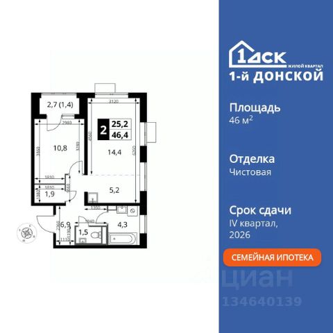 ТОЛЬКО 4 ДНЯ ДО 10.02 • Дополнительная скидка 10% • Ставка 10% по стандартной ипотеке для всех без наценок • Ставка 3,5% по семейной ипотеке Успейте купить выгодно! Прямая продажа от застройщика! Жилой Комплекс класса Комфорт Плюс. Продаётся 2-к квартира номер 472 общей площадью 54.6 кв.м. на 22-м этаже 24 этажного здания. Отделка Whitebox. Цена с учётом скидки. Особенности квартиры: - МЦД-5 в пешей доступности - Квартал с собственной набережной - Свои 2 детских сада и школа - Линейная планировка - максимальная функциональность и удобство. - Раздельный санузел - больше удобства для всех членов семьи. - Просторная мягкая зона - комфорт и уют для отдыха всей семьи. - Возможность добавить спальное место - дополнительный комфорт для гостей. - Гардеробная - удобство для хранения и организации вещей. - Лоджия - уютное место для отдыха и тишины. Квартира с предчистовой отделкой (White box). Вам не придется заниматься черновыми и трудоёмкими работы, а чистовую отделку и дизайн - сделайте на свой вкус. Информация о комплексе: Комплекс 1-й Донской расположен в 7 км от МКАД по трассе М-4 Дон. В нем сочетаются все плюсы комфортной городской среды и природного окружения. В проекте достаточно большой процент квартир, выходящих на 2-3 стороны света. Секции-маяки формируют у зданий визуальную L-форму, что придает застройке структуру и ритмику объемов. На ощущение динамики работает и разная этажность зданий. Теплая цветовая палитра фасадов отражает природу Дона. Вечерами дома преображаются благодаря архитектурной подсветке, выгодно выделяясь на городском фоне. Природа оказывает положительное влияние на человека на всех уровнях восприятия: через зрение, запахи, звуки, тактильные ощущения. Неподалеку от ЖК Первый Донской: Ермолинский парк, Видновский лесопарк, Жуковский парк Транспортная доступность: Комплекс удобно расположен в 7 км от МКАД по трассе М-4 Дон (через Видное). Расстояние до Каширского шоссе составляет 12 км. Добраться до метро и центра Москвы позволяет развитая сеть маршрутов общественного наземного транспорта. Действующая ж/д станция Калинина Павелецкого направления в 15-17 минутах ходьбы (МЦД-5 в 2025-2026 гг). Внутренняя инфраструктура: Проект 1-й Донской соседствует с бурно развивающимся районом, основная инфраструктура которого уже сложилась. В строительстве современных жилых комплексов в округе есть свои плюсы: здесь формируется продуманная и комфортная городская среда. Что касается внутренней инфраструктуры, на территории квартала будут расположены собственные муниципальные 2 детских садика и школа, которые помогут совместить приятное с полезным. Территория комплекса пронизана целой сетью живописных пешеходных маршрутов, позволяющих попасть в любой уголок района. Основные пути, как водится, "торговые". Они проходят вдоль магазинов, кафе и других представителей коммерции и отделяются от проезжей части зеленой "фито" - стеной. Среди крупных социальных объектов предусмотрены своя поликлиника и торгов 2-комнатная квартира в новостройке с отделкой рядом с метро Зябликово.