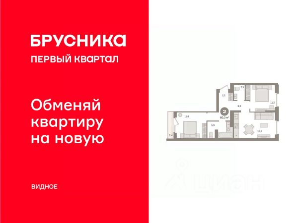 Квартира с кухней-гостиной и двумя спальнями в Квартале Герцена. Особенности планировки: гардеробная, мастер-спальня, окна на две стороны, предчистовая отделка, терраса. Квартиру можно купить онлайн. В квартире выполнена отделка "под чистовую". Установлены окна с двойным стеклопакетом, радиаторы с терморегуляторами. На полу цементно-песчаная стяжка. В квартиры заведены кабели для интернета и ТВ. Входная сейф-дверь не требует замены. Организован поквартирный учёт энергоресурсов (водоснабжение, отопление, электричество). Квартал "Герцена" расположен в Бирюлёве Восточном — районе на юге Москвы. Дорога до ТТК займет всего полчаса на автомобиле, до станции метро и ж/д станции "Царицыно" — 13 минут, а до автовокзала "Южные ворота" — 20 минут. До автобусных остановок можно дойти пешком. В 2027-2028 году откроется новая станция метро "Лебедянская", дорога до неё займет всего 18 минут. Общая площадь "Квартала Герцена" составляет 27,3 га. Дома состоят из разноуровневых секций высотой от 6 до 55 этажей с видовыми террасами и балконами. На территории квартала будет построена поликлиника, детский сад на 350 мест и воспитательно-образовательный комплекс на 1075 мест, а также рестораны, клиники, магазины и салоны красоты. Объявление от застройщика. Ипотека, материнский капитал. Обмен — один из способов покупки. Обмен подойдёт, если вы хотите быстро поменять старую квартиру на новую. Получить ипотеку или рассрочку, а также обменять квартиру можно онлайн. Запишитесь на онлайн-презентацию по телефону или на сайте. В проекте доступна программа обмена: мы выкупим вашу старую квартиру, направим средства на оплату новой и сопроводим сделку. Доступны опции: проживание до 30 месяцев, закрытие ипотеки, выделение детских долей, получение средств на ремонт. квартиры в нашей базе: ГРЦ01.1-Ж5.20.10. 2-комнатная квартира в новостройке с отделкой рядом с метро Зябликово.