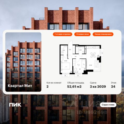 Новостройка! Продается 2-комн. кв-ра площадью 62,61 кв.м, (Корпус 3.4, Секция 4) 3 этаж 32-этажного дома в Квартал Мит от ПИК. "Квартал Мит" строится в экологически чистом районе Митино, где по соседству расположен большой лесопарк, а с двух сторон протекают реки Сходня и Журавка. Для семей с детьми здесь появится школа и два детских сада. В 20 минутах пешком находится станция метро "Пятницкое шоссе", а за 10 минут на автомобиле можно доехать до МКАД. Архитектура от бюро Slava+ Концепция квартала сочетает эстетику и функциональность. Башня-доминанта цвета красной охры и разновысотные корпуса терракотового, белого и графитового оттенков формируют узнаваемый силуэт современного городского пространства. Просторные террасы, разнообразные балконы и окна в пол придают облику динамичность и дарят квартирам уютные места для отдыха. Первые этажи с панорамными окнами создают сцену для яркой городской жизни. Здесь появятся пространства для прогулок, летние террасы, рестораны и коммерческие помещения. Комфорт "Серии плюс" При входе в дом жителей встретят светлые просторные лобби с высокими потолками — попасть сюда можно как со стороны улицы, так и со двора. В лобби будет зона ожидания, велосипедная и колясочная. Быстро и с комфортом подняться на нужный этаж помогут бесшумные скоростные лифты. На подземном этаже появится паркинг и индивидуальные кладовые, где удобно хранить сезонные вещи. #d13.11# Артикул 1034640 (Застройщик АО СЗ "ПФК") Продам 2-комнатную квартиру в новостройке с отделкой в районе Митино в Москве.