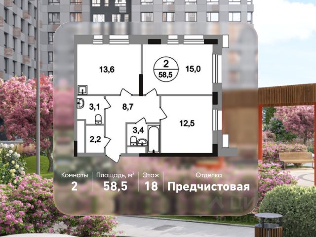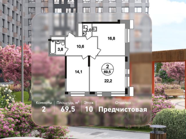 Продается двухкомнатная квартира с отделкой в 9 фазе города-парка "Первый Московский". Общая площадь квартиры - 56,1 кв. м, этаж 10 из 19. Срок сдачи - 2 квартал 2027 года. Тип дома - монолитный. ТОЛЬКО ДО 31 МАРТА выгодные условия на приобретение квартиры в ипотеку или рассрочку. Звоните - и мы подберем оптимальное предложение под ваш запрос! Корпус состоит из 3 секций. Город-парк "Первый Московский" расположен всего в 7 км по Киевскому шоссе от МКАД на территории Новой Москвы. Из города-парка прямой выезд на Киевское шоссе и трассу Солнцево-Бутово-Варшавское шоссе. ТРАНСПОРТНАЯ ДОСТУПНОСТЬ: - 5 мин. на личном автомобиле или 10 мин. на автобусе 189, 147, 193 до станции метро "Филатов Луг" - 5 мин. на личном автомобиле или 12 мин. на автобусе 863 до станции метро "Саларьево" - 6 мин. на личном автомобиле или 15 мин. на автобусе 333 до станции метро "Рассказовка" РАЗВИТАЯ ИНФРАСТРУКТУРА В ОКРУЖЕНИИ: - общеобразовательная школа 2120 (корпуса д1, д7, ш1-ш5) - детский сад 2120 (корпуса д2, д9) - школа искусств - городская больница, детская поликлиника, филиал 5 - подстанция скорой помощи 58 и пожарно-спасательный центр 313 - отдел полиции, отдел ГИБДД - торговые центры "Столица" и "Новомосковский" - стадион, каток, бассейн - кафе, продуктовые магазины, аптеки, фитнес-центры, салоны красоты и пр. БЛАГОУСТРОЙСТВО: - дворы без машин - разнообразные детские площадки и развивающие комплексы - детские площадки разделены по возрастным группам - максимальная близость корпуса к парку "Филатов луг" - озеленение территории с учетом зонирования, островками для отдыха ОСОБЕННОСТИ АРХИТЕКТУРЫ: - безбарьерные входные группы - велопарковка на -1 этаже - колясочные в каждой входной группе - коммерческие помещения на 1 этаже в трех секциях - кладовые помещения расположены на жилых этажах и на -1 этаже - в каждой секции корпуса - 4 лифта: 2 пассажирских, 2 грузовых - видеонаблюдение установленное в холлах первых этажей, у подъездов и на прилегающей территории АВТОРСКИЙ ДИЗАЙН: Входные группы выполнены по авторскому дизайну, оснащены системой "тёплый пол". В каждой входной группе будет располагаться комфортабельная зона ожидания, почтовые ящики с ячейкой для спама, колясочная, акцентные пуфы и столик. Продам 2-комнатную квартиру в новостройке с отделкой в Московском.