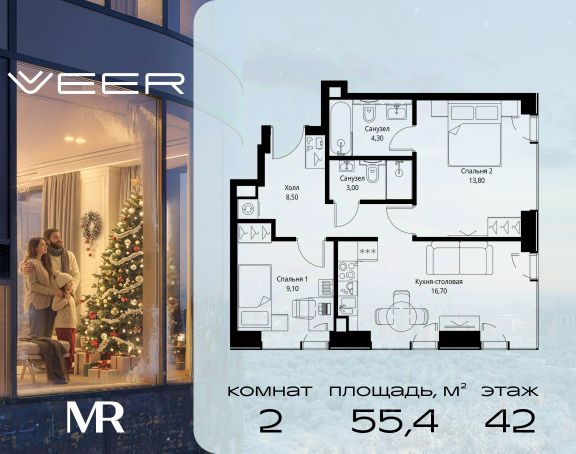 Прямая продажа от застройщика. Продаётся 2-комнатная квартира общей площадью 91 м² с предчистовой отделкой в ЖК VEER на 3-м этаже 22 этажного дома. Жилой комплекс бизнес-класса VEER от компании MR — это футуристичный мультиквартал, расположенный в престижной локации на западе Москвы. Благодаря переменной высоте башен — двух 22-этажных, 46-этажной и двух 59-этажных — возникает динамичность в силуэте комплекса, а его яркий образ вносит разноплановость в архитектурный пейзаж района. Расположение и транспортная доступность: • VEER удобно расположен в непосредственной близости от Кутузовского проспекта, обеспечивая быстрый доступ к центральным районам Москвы • Комплекс находится непосредственно напротив самого большого природного заказника в Москве - парка "Долина реки Сетунь", а за семь минут можно доехать до памятника садово-паркового искусства, Троекуровского леса. • Всего в 15 минутах - центр города, самая престижная бизнес-школа управления России "Сколково", дом творчества "Переделкино". • 18 минут пешком до м. "Давыдково" • Открытие новых станций метро в шаговой доступности в будущем Инфраструктура: Разнообразить свой день резиденты VEER смогут также проводя больше времени на свежем воздухе. Двор разделен на 4 зоны разных эмоций и действий, которые пересечены и соединены веерными прогулочными маршрутами: • Спортивная площадка устроена в глубине "Кленовой рощи" • В "Чайном домике" будет создан навес с утеплением для отдыха в любую погоду • Площадки для детей воплотятся в "Волшебный лес" с цветами, зеркалами и световым дизайном • "Центральная площадь" устроена у водного оазиса живописного пруда. Компания MR предлагает своим клиентам специальные условия приобретения квартир в рамках программ ипотечного кредитования от банков-партнеров. 2-комнатная квартира в новостройке с отделкой в районе Можайский в Москве.