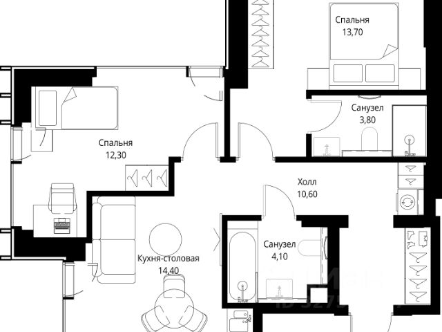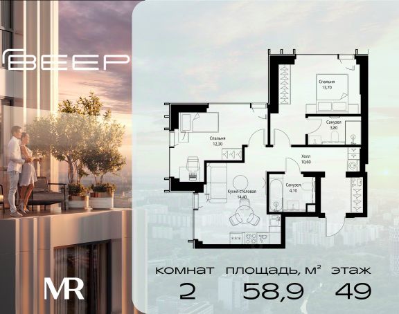 Прямая продажа от застройщика. Продаётся 2-комнатная квартира общей площадью 54.50 м² с предчистовой отделкой в ЖК Веер на 7-м этаже 46 этажного дома. Жилой комплекс бизнес-класса Веер от компании MR — это футуристичный мультиквартал, расположенный в престижной локации на западе Москвы. Благодаря переменной высоте башен — двух 22-этажных, 46-этажной и двух 59-этажных — возникает динамичность в силуэте комплекса, а его яркий образ вносит разноплановость в архитектурный пейзаж района. Расположение и транспортная доступность: • Веер удобно расположен в непосредственной близости от Кутузовского проспекта, обеспечивая быстрый доступ к центральным районам Москвы • Комплекс находится непосредственно напротив самого большого природного заказника в Москве - парка "Долина реки Сетунь", а за семь минут можно доехать до памятника садово-паркового искусства, Троекуровского леса. • Всего в 15 минутах - центр города, самая престижная бизнес-школа управления России "Сколково", дом творчества "Переделкино". Инфраструктура: Разнообразить свой день резиденты Веер смогут также проводя больше времени на свежем воздухе. Двор разделен на 4 зоны разных эмоций и действий, которые пересечены и соединены веерными прогулочными маршрутами: • Спортивная площадка устроена в глубине "Кленовой рощи" • В "Чайном домике" будет создан навес с утеплением для отдыха в любую погоду • Площадки для детей воплотятся в "Волшебный лес" с цветами, зеркалами и световым дизайном • "Центральная площадь" устроена у водного оазиса живописного пруда. Компания MR предлагает своим клиентам специальные условия приобретения квартир в рамках программ ипотечного кредитования от банков-партнеров. 2-комнатная квартира в новостройке с отделкой в районе Можайский в Москве.
