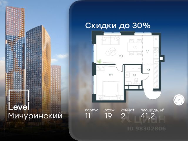 О квартире Продаётся 2-комнатная квартира общей площадью 57.4 кв.м. с отделкой white box. Квартира расположена на 11 этаже корпуса 5.2 в жилом комплексе бизнес-класса "Среда на Лобачевского" в пешей доступности от метро "Аминьевская". О жилом комплексе "Среда на Лобачевского" полностью соответствует критериям современного жилого пространства. Взяв за основу рациональный подход, мы гармонично соединили дизайн, актуальные тренды и функциональность. Продуманный современный экстерьер и функциональные планировки внутри, приватные пространства и разнообразные досуговые зоны для каждого члена семьи — все это "Среда на Лобачевского". Инфраструктура Район отлично развит и наполнен жизнью, здесь уже есть вся необходимая инфраструктура — детские сады, школы, медучреждения, торговые центры, благоустроены парки для прогулок и отдыха, удобен и легкодоступен городской транспорт. Рядом расположены учебные корпуса крупных университетов — МГУ, МГИМО и РАНХиГС. Школы и детские сады в районе занимают высокие позиции в городских рейтингах, поэтому вам не придется беспокоиться о качестве образования детей. Как и об отдыхе: поблизости расположены живописные пруды, реки и парки. Это Парк Олимпийской деревни, Парк имени 50-летия Октября, Мещерский парк и Очаковские пруды. Теперь поставить галочки в еженедельном чек-листе "спорт-прогулки-встречи с друзьями" можно, не покидая любимый район. Особенности Особое внимание в проекте уделяется созданию функциональных пространств не только внутри дома, но и за его пределами. В ландшафтном парке "Среды на Лобачевского" расположены крытые зоны для спокойного времяпровождения, места для активного отдыха и спорта, коворкинг, соседский комьюнити-центр, водные объекты. —Ландшафтный парк во дворе. —Водный сад с зонами отдыха. —Зоны коворкинга. —Дизайнерские гранд-лобби. —Бесключевой доступ. —Подземный паркинг.