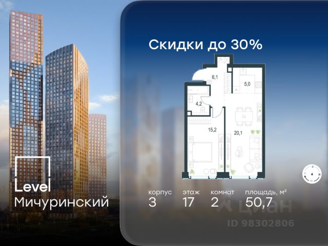 Цена указана с учётом скидки при 100%-й оплате, несубсидированной ипотеке, рассрочке (кроме программы "Рассрочка 0%"). В жилом квартале, расположенном на границе с природным заказником "Долина реки Очаковки", продаётся 2-комнатная квартира площадью 36.30 кв.м с отделкой white box. Квартира расположена на 8 этаже 30-этажного корпуса 3 в жилом комплексе бизнес-класса Level Мичуринский (компания Level Group/Левел групп). Отличная транспортная доступность: - от 10 мин. пешком до станции метро "Мичуринский проспект" - 15 мин. пешком до станции метро "Аминьевская" - 7 мин. на авто до МКАД - 10 мин. на авто до ТТК - 15 мин. на авто до Москва-Сити Продуманный архитектурный проект: - Выразительная архитектура от известных бюро: корпуса 1-6 - СПИЧ, корпуса 7-13 - Borisov Architects; - Из окон открываются живописные виды на парки, Москва-Сити и МГУ; - Высокие потолки до 6,35 м; - Стильные лобби с окнами в пол и высокими потолками до 4,7 м; - С каждого этажа дома на лифте можно спуститься в подземный отапливаемый паркинг. Расположение: Level Мичуринский строится в одном из самых зелёных районов Москвы - Очаково-Матвеевское. Этот уголок столицы идеален для поддержания здорового образа жизни. В шаговой доступности от проекта находятся заказник "Долина реки Очаковки" - 1 мин. пешком и Очаковский парк - 7 мин. пешком. На велосипеде можно добраться до таких парков, как "Событие", парк Олимпийской деревни, парк 50-летия Октября и парк Школьников. В 15 минутах езды на авто расположено более 30 детских садов (из них 14 в пешей доступности), 32 школы (из них 13 в пешей доступности) и 14 вузов. Также в ближайшем окружении - более 25 медицинских учреждений, 11 спортивных клубов и 22 продуктовых супермаркета. Внутренняя инфраструктура: На территории жилого комплекса строится три детских сада и школа. На первых этажах домов откроется супермаркет, фитнес-центр, ресторан, кафе и другие сервисы. Подземные этажи займут паркинги: трёхуровневые - в этапах 1 и 2, одноуровневый - в этапах 3 и 4. Преимущества проекта: - 4,5 га благоустроенной территории с видовым мостом, уличным кинотеатром, зонами для тихого отдыха, работы, воркаута, площадки для петанка, футбола, настольного тенниса и пляжного волейбола. - Дизайнерские лобби с панорамным видом на двор, мойками для лап животных и комфортными зонами ожидания. - Безопасность жителей: круглосуточное видеонаблюдение всех зон общего пользования (лобби, лифты, паркинги, детские площадки), система контроля доступа, управление видеодомофоном через мобильное приложение, единый ключ доступа на территорию жилого комплекса. - Технологии и комфорт: высокоскоростной Wi-Fi в лобби и на придомовой территории, автоматическая система контроля и учёта ресурсов, абонентская связь с консьержем, распознавание номеров автомобилей при въезде в паркинг и выезде из него. Продам 2-комнатную квартиру в новостройке с отделкой на улице Озерная в Москве.