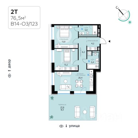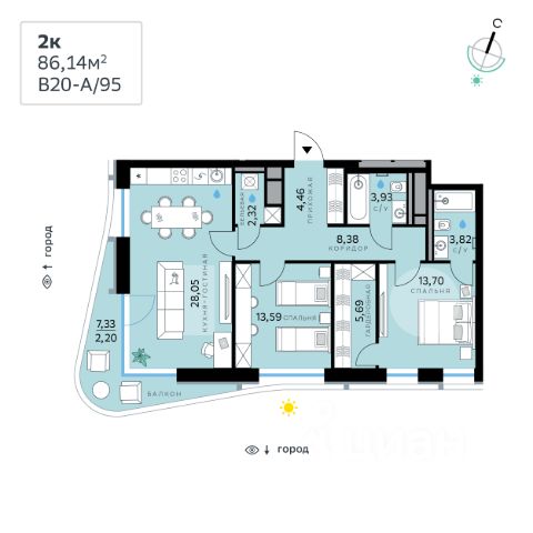 В продаже — двухкомнатная квартира с чистовой отделкой, общей площадью 79,1 кв. м. Квартира расположена на первом этаже десятиэтажного дома класса Оптимум в квартале В17 нового района СберСити, который строит Сбер. Всего в доме — 54 квартиры. Квартал В17 — современная интерпретация голландской архитектуры. Каждый корпус имеет индивидуальный облик. В домах класса Оптимум используется лаконичная крупноформатная облицовка стеклофибробетоном и декоративными металлическими панелями. На верхних этажах расположены квартиры с панорамным остеклением и террасами, с которых открываются виды на город, парки и бульвар. В квартирах предустановлена система "умный дом" — комплекс решений, объединяющий квартиру, дом и прилегающую территорию. Жильцы могут регулировать климат и освещение голосом или со смартфона, установлена защита от протечек. Проведены работы по улучшению шумоизоляции, установлены двухкамерные стеклопакеты с алюминиевым профилем и скрытыми створками. В санузлах — тёплый пол. В доме расположены: • уютное лобби, • коворкинг, • общественная терраса, • детская игровая комната, • лапомойка, • колясочная и велосипедная комната на первом этаже, • подземный паркинг. Квартал В17 состоит из шести корпусов переменной этажности (от 1 до 10 этажей) и 491 квартиры. Корпуса объединены общей подземной частью, где расположен паркинг на 309 автомобилей, места для мотоциклов и более 400 кладовых помещений. Во дворах созданы приватные благоустроенные пространства с ландшафтными композициями, детскими и спортивными площадками, зоной для йоги, прогулочными маршрутами и местами отдыха. Рядом расположен детский сад, парк и набережная Москвы-реки. СберСити — это новый жилой и деловой район на западе Москвы, в одном из самых экологически чистых и престижных мест столицы. Это первая в России и крупнейшая в мире инновационная городская среда, созданная по международным стандартам зелёного проектирования. Здесь внедряются решения в области энергоснабжения, вакуумного мусороудаления, тестирования зелёных технологий, а в дальнейшем — системы искусственного интеллекта для управления домами и городской инфраструктурой. Строительство проекта началось в 2021 году, заселение первых корпусов — с лета 2024-го. Общая площадь территории — 461 га, из них более 2,5 млн кв. м жилья и около 833 тыс. кв. м офисных пространств. Будет построено 7 школ, 13 детских садов и 2 поликлиники. В СберСити будут жить 65 тыс. человек и работать 70 тыс. Развитием территории занимается АО "Рублёво-Архангельское", входящее в группу Сбер. СберСити — место, где хочется жить, работать и растить детей. Переезжайте в СберСити!