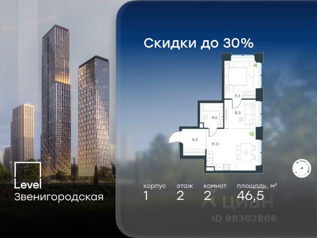10 минут от Москва-Сити В продаже квартира площадью 83.65 м² с предчистовой отделкой на 17 этаже 55 этажного дома. Квартира расположена в корпусе Anna. Джойс — это премиальный жилой комплекс от девелопера MR в районе Хорошёво-Мнёвники. Он включает несколько эффектных небоскрёбов высотой 47-56 этажей, эксклюзивные форматы квартир с панорамным остеклением, подземный двухуровневый паркинг на 239 м/м, собственную приватную инфраструктуру, закрытый ландшафтный парк 2,3 Га с функциональным зонированием и охраняемой территорией. Над проектом работали лучшие команды международных агентств с многолетним опытом: Genpro, S&P, iLight International и другие. Расположение Пешком: - 5 мин. ст. МЦК "Хорошёво"; - 15 мин. ст. м. "Народное ополчение"; - 10 мин. ст. метро "Звенигородская" с 2027 года; - 20 мин. причал "Карамышевский". На автомобиле: - 3 мин. до Звенигородского шоссе; - 5 мин. до ТТК: - 8 мин. до Серебряного бора и Строгинского затона - 10 мин. до ММДЦ "Москва-Сити"; - 40 мин. до аэропорта "Шереметьево"; Благоустройство - собственный ландшафтный парк 2,3 Га; - парк скульптур от Cosmoscow; - консьерж-сервис 24/7; - сервисный лифт и вход; - игровые и спортивные площадки; - коворкинг с библиотекой; - лаунж-зона с камином; - игровые комнаты для детей и клуб для подростков с оборудованием для видеоигр; - спортивная студия для индивидуальных тренировок; - гостиная с мини-кухней; - зоны для выгула собак; - подогрев пешеходных дорожек в зимний период; - автополив зелёных насаждений; - премиальные рестораны, кафе, химчистки, аптеки и супермаркеты. Окружение - 4 парка: Покровское-Стрешнево, Филёвский парк, Серебряный бор и Берёзовая роща; - 15 общеобразовательных заведений, в том числе две школы из самых лучших в Москве: государственная школа "Интеграл" и частная "Хорошкола"; - спортивное сооружение "ВЭБ Арена", домашний стадион ФК ЦСКА; - крупнейший в Европе торгово-развлекательный центр "Авиапарк".